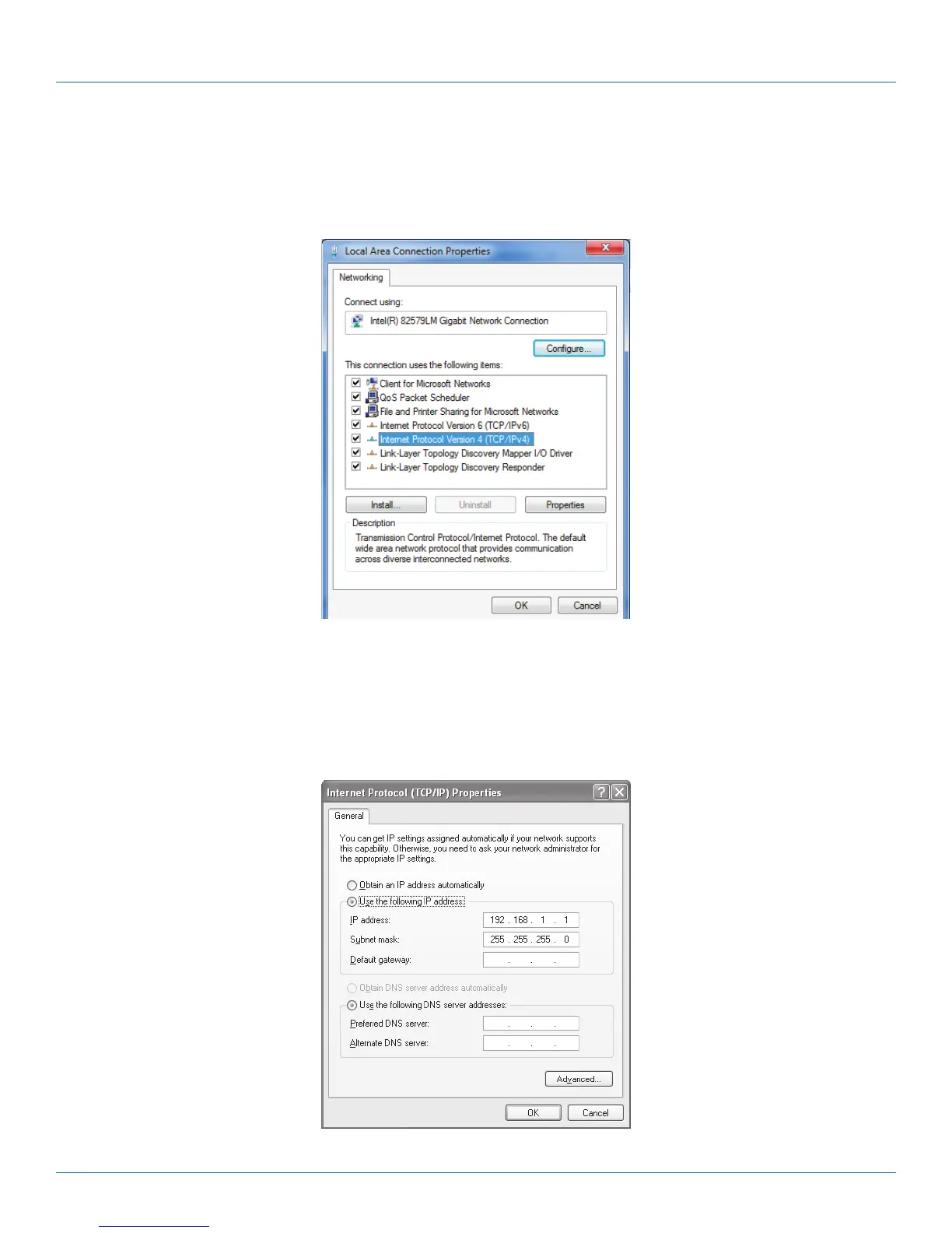 3. Select the “Use the following IP address” option. Set the IP address to 192.168.1.1 (or another address different from