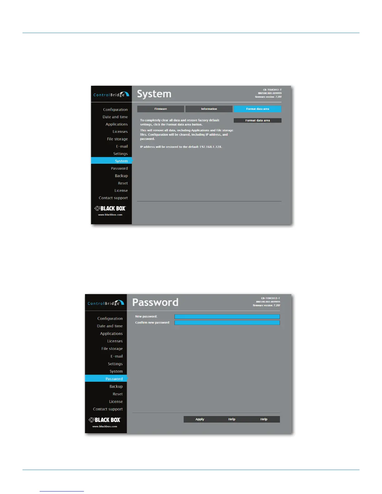 word, and touch-screen calibration values. IP address will be restored to the default 192.168.1.128.