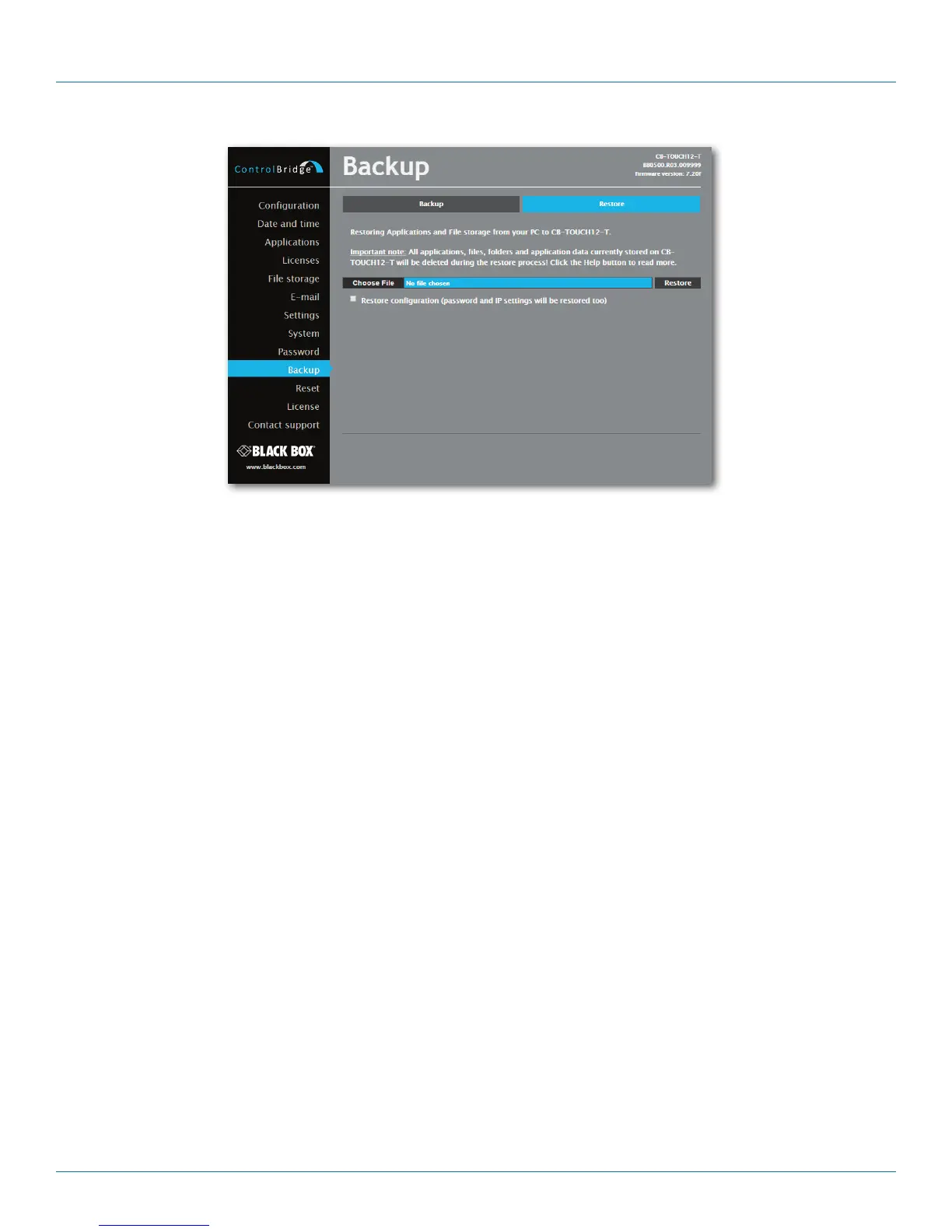 If you want ControlBridge Unit’s settings to be restored, too, check the “Restore configuration” box. You can access the
