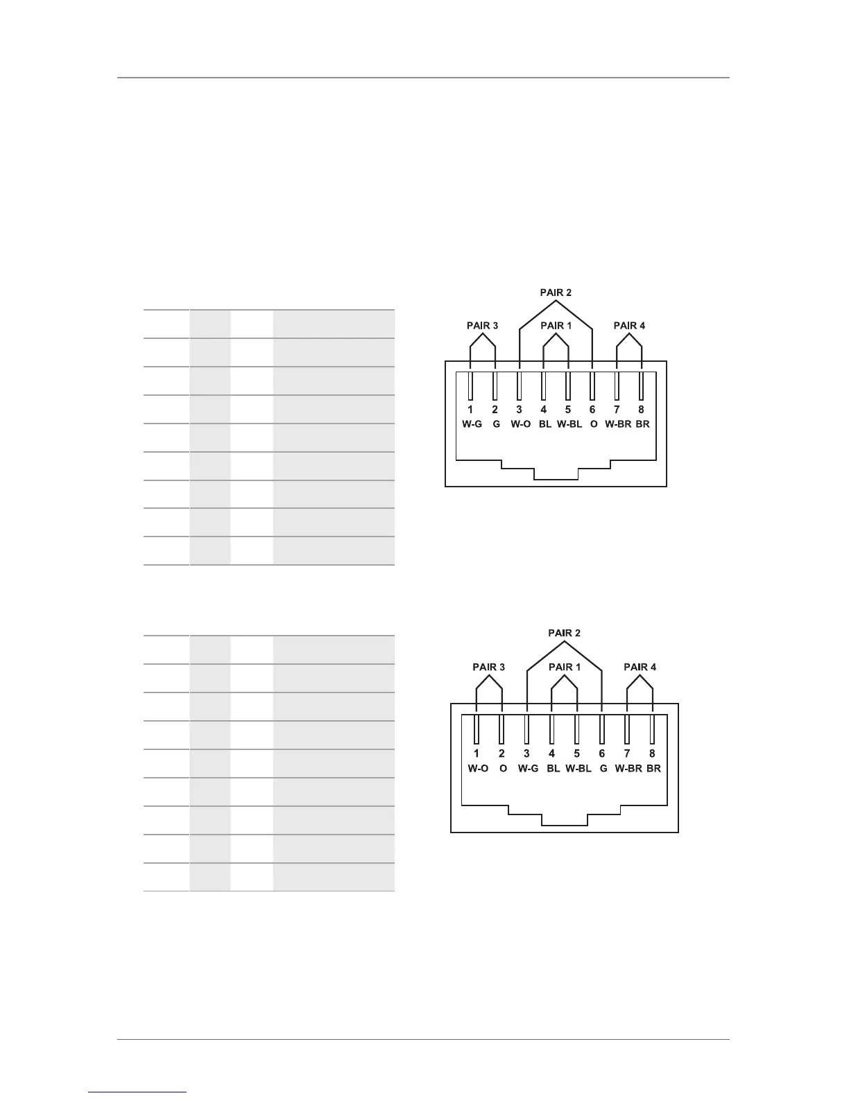 T568A scheme (Table 5-1) or the T568B scheme (Table 5-2) for cable termination