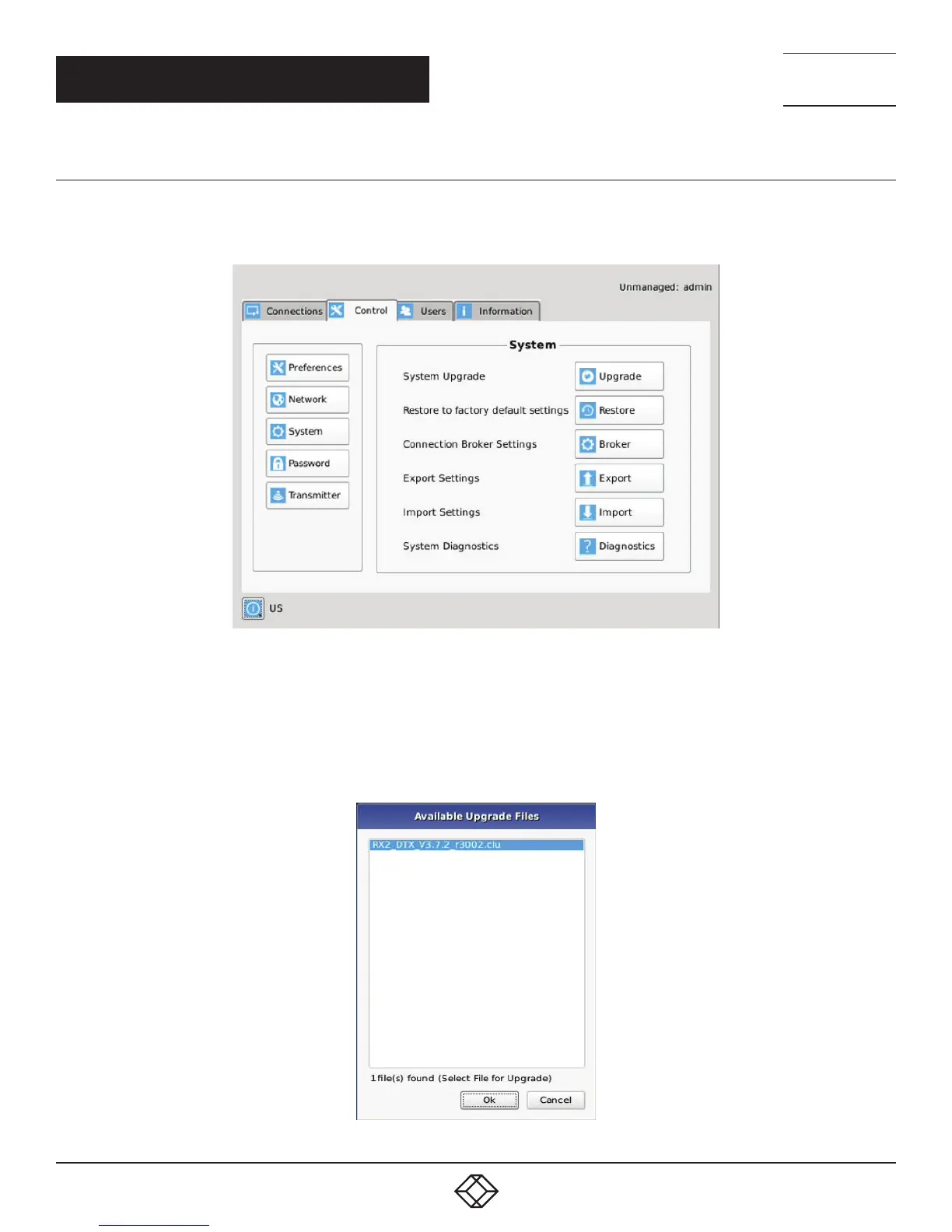 directory of the flash drive. When you click the Upgrade button, the “valid” upgrade files on the USB drive are displayed. A valid file