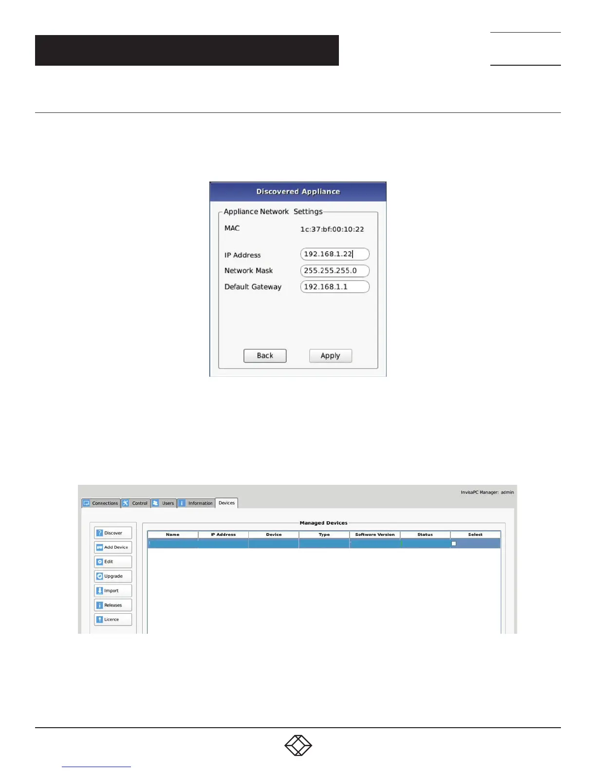 will need its network settings changed. To do this, click the device you want to manage and press the configure button. A dialog box