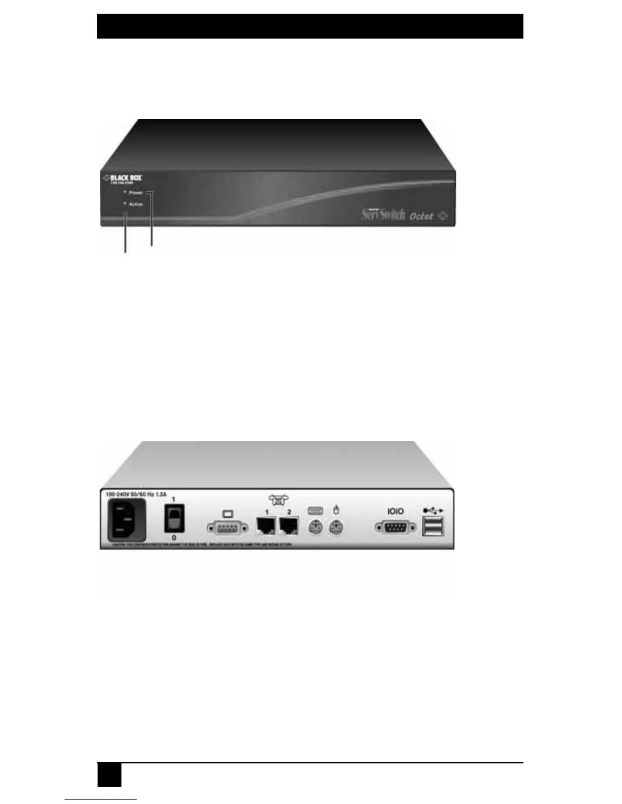 • Power LED – The upper LED is illuminated when power is connected and off when