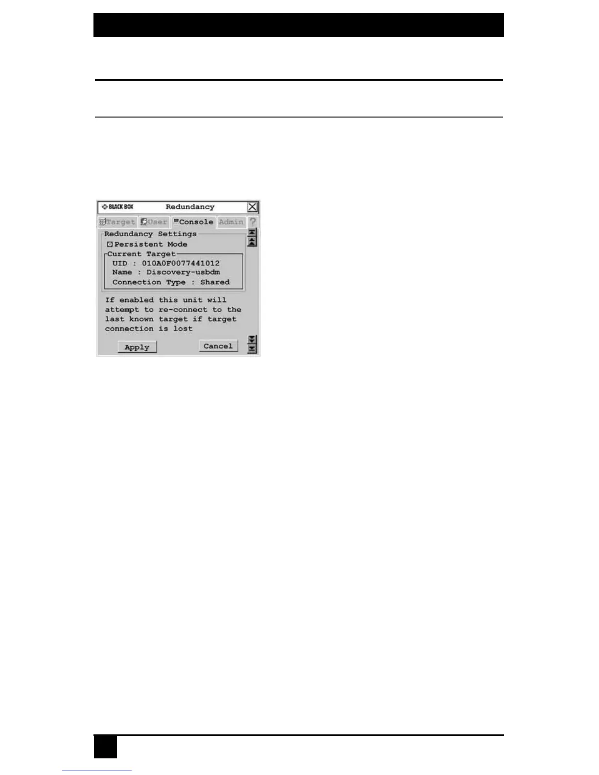 2. Click the Console tab, then click the down arrow button to display the Redundancy