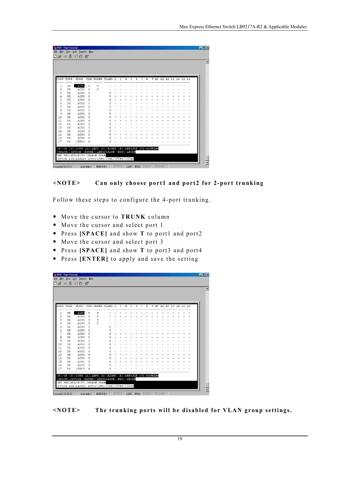 <NOTE> Can only choose port1 and port2 for 2-port trunking