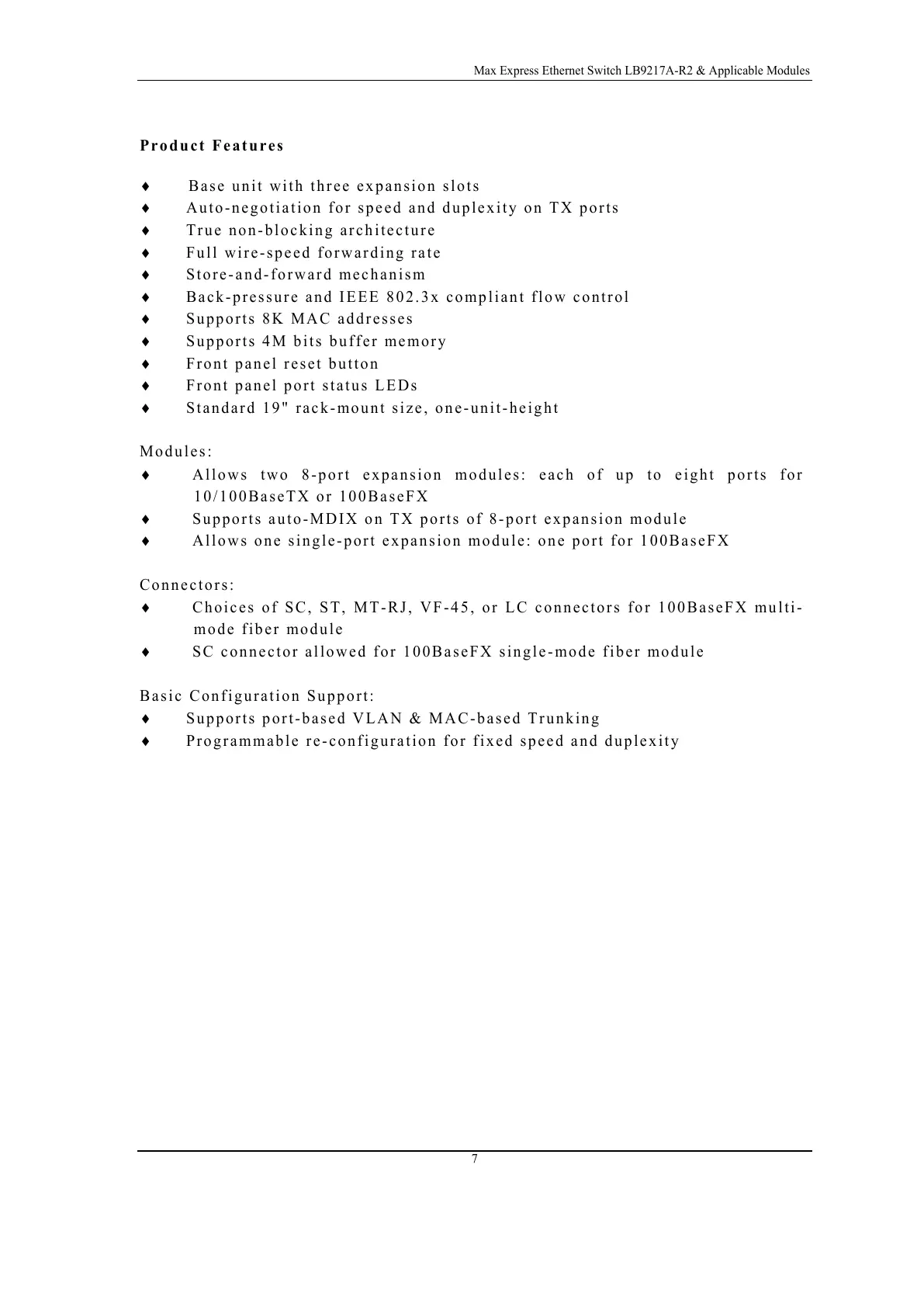 Max Express Ethernet Switch LB9217A-R2 & Applicable Modules