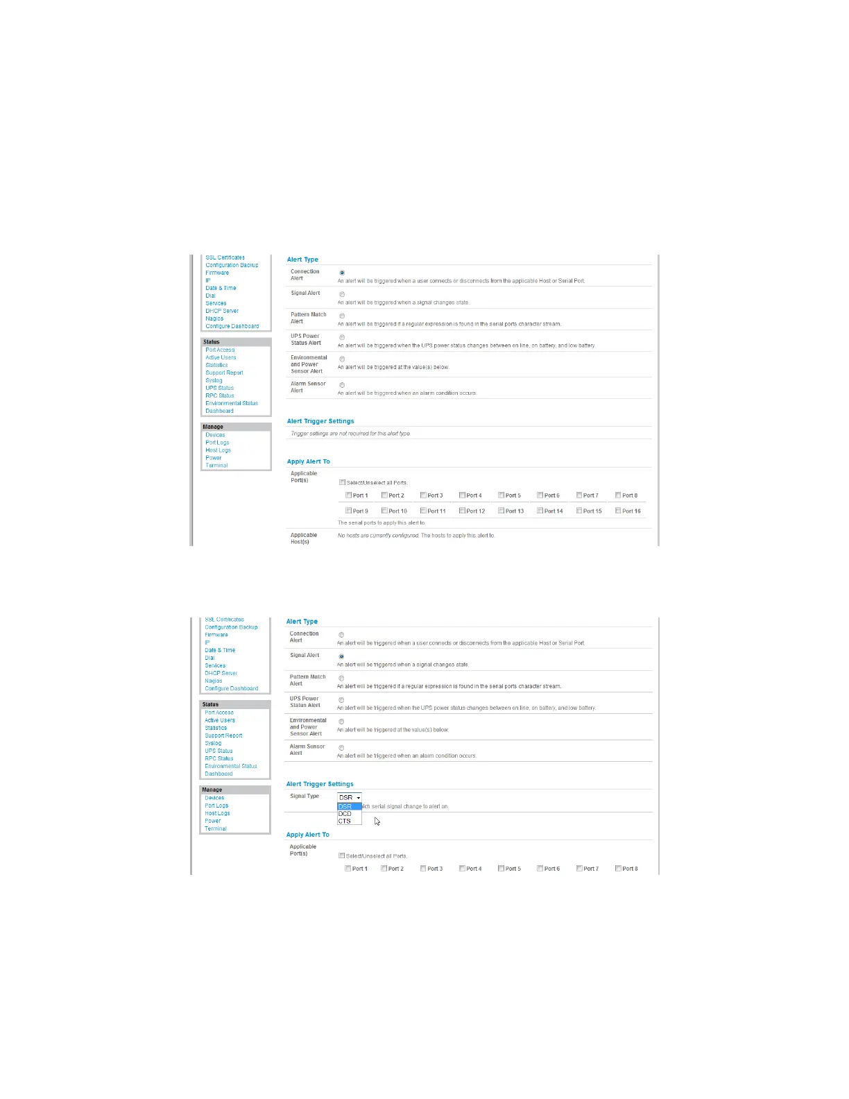 field. This alert type will only be applied to serial ports selected as Applicable Ports(s).