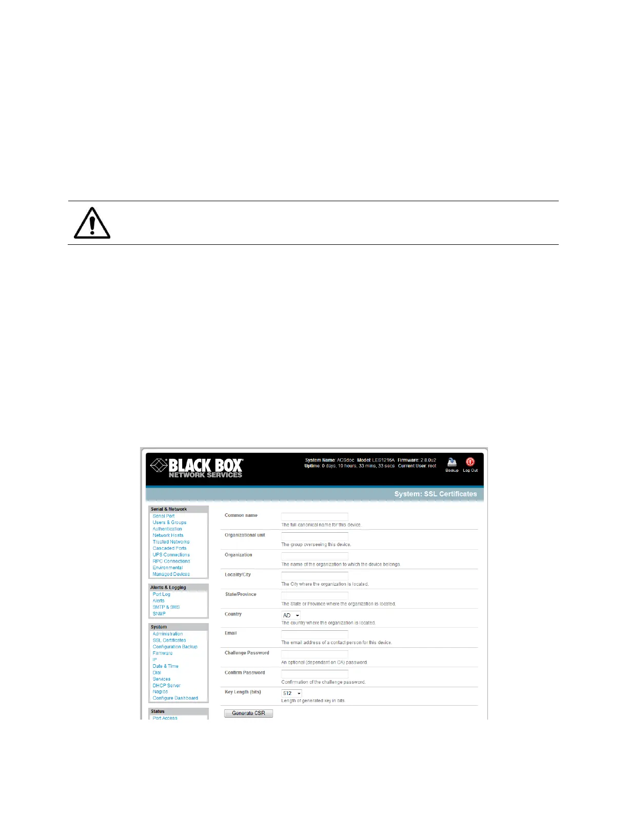 To do this, the console server must be enabled to generate a new cryptographic key and the associated