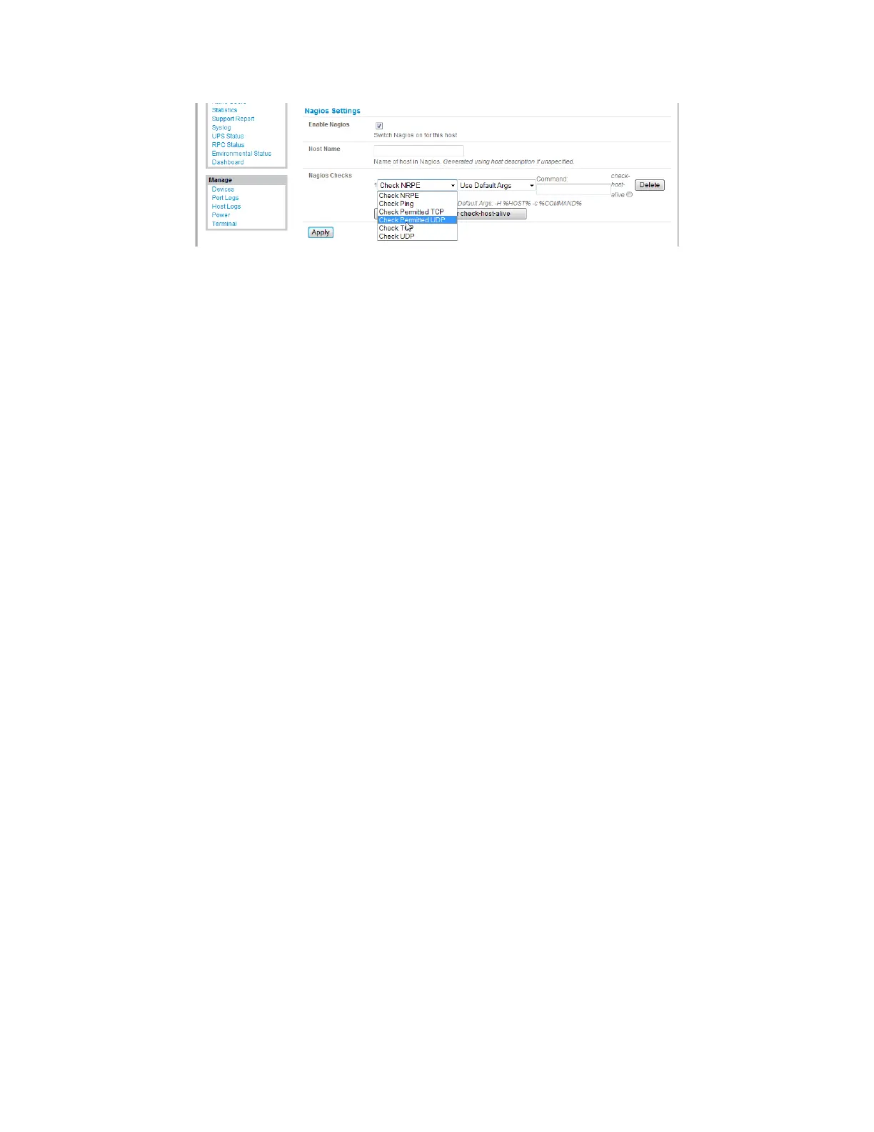 Scroll down to Nagios Settings and check Enable Nagios.