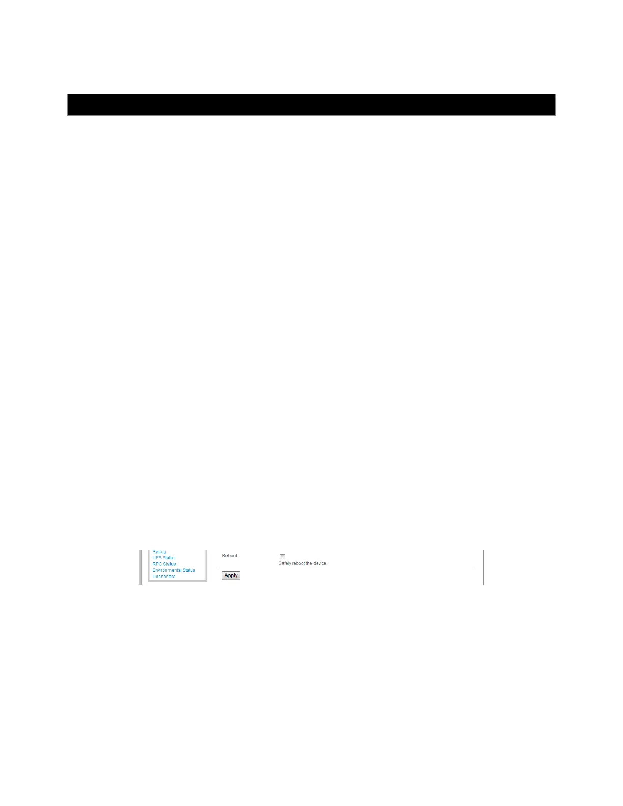 Selecting Reboot in the System: Administration menu and clicking Apply.