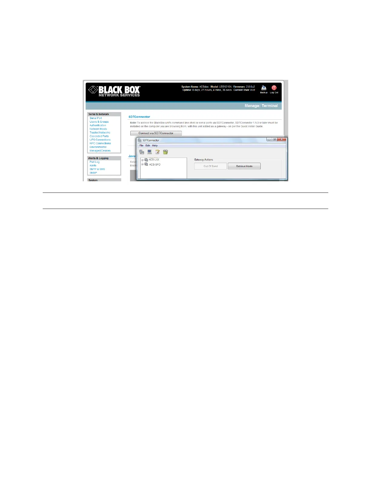 Click Connect to SDT Connector to access the console server’s command line shell or the serial