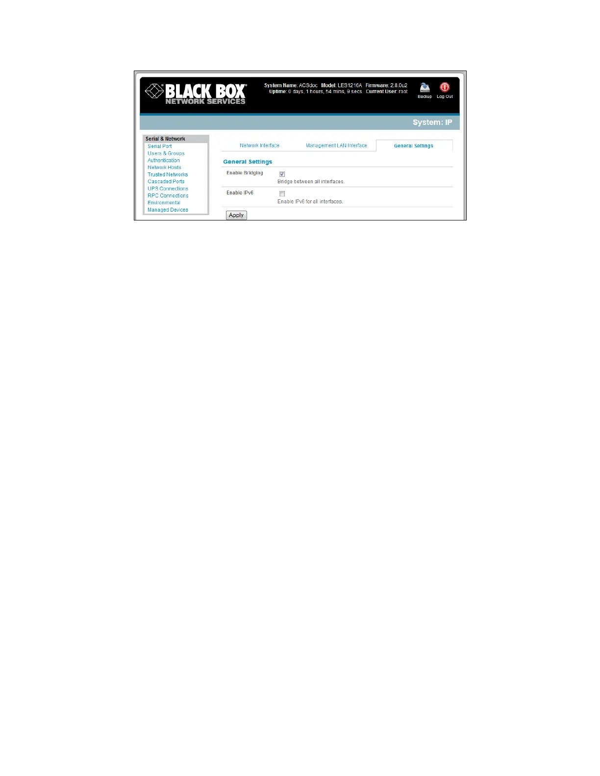 Select Enable Bridging on the System: IP General Settings menu.
