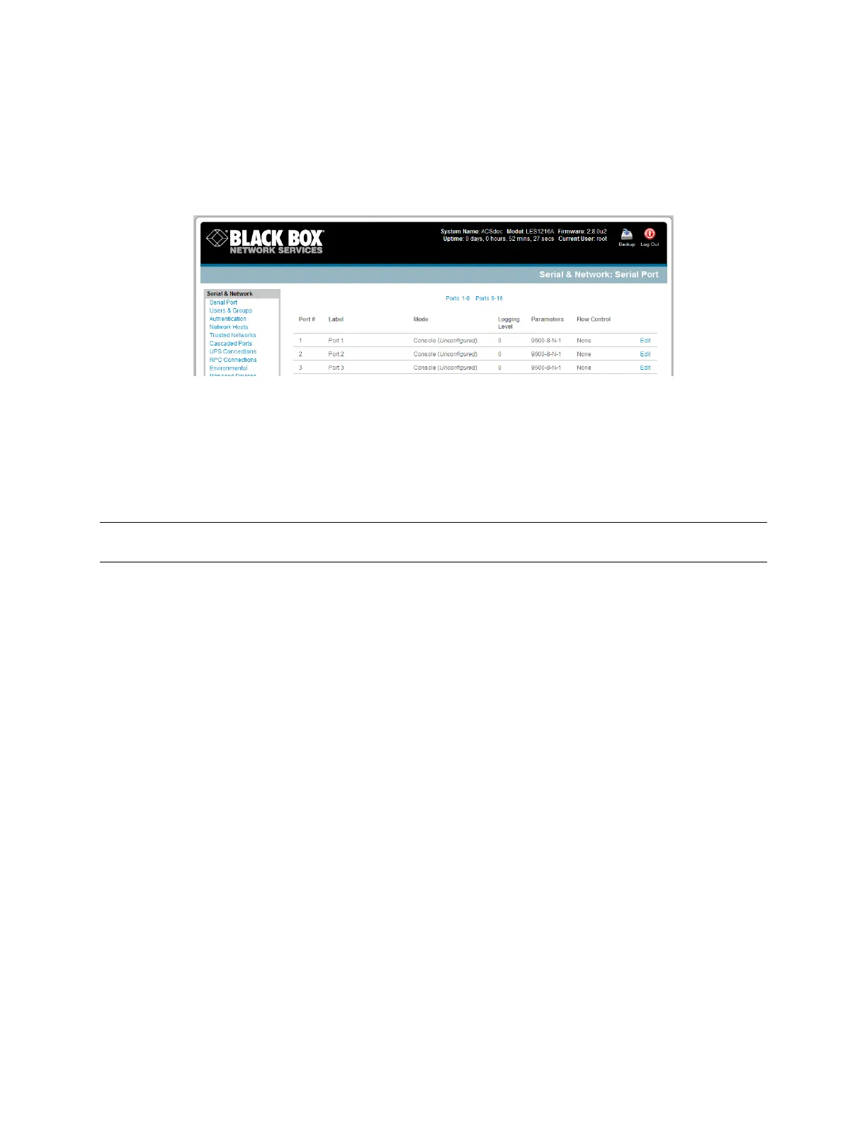 By default, each serial port is set in Console Server mode. To reconfigure the port, click Edit.