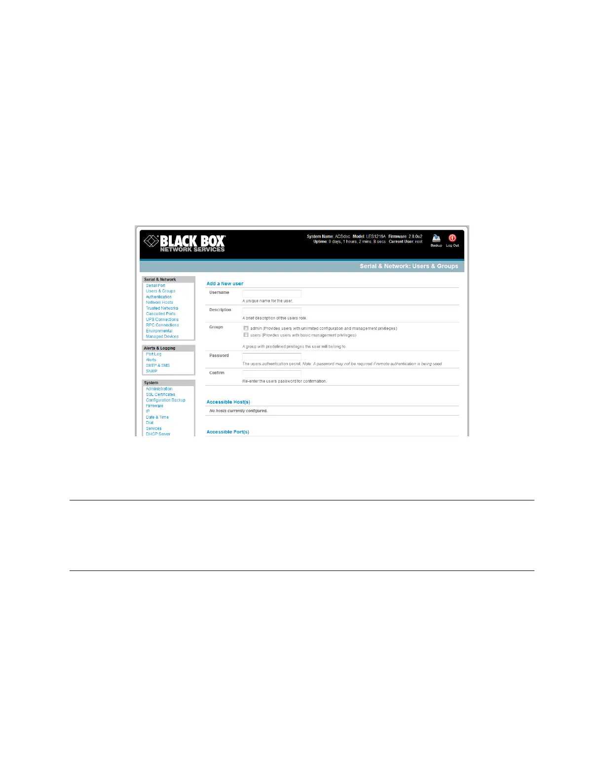 Select Serial & Network: Users & Groups to display the configured Groups and Users.