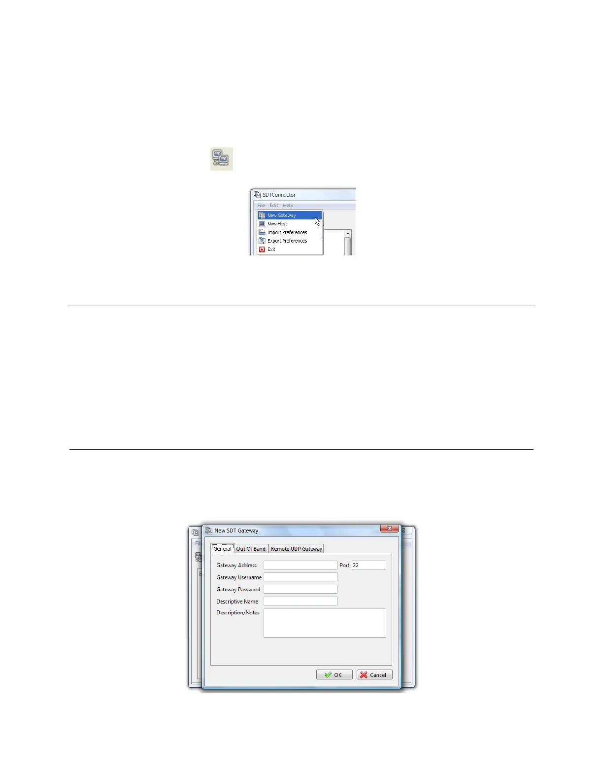 (refer to Section 6.2.7 and 6.2.9). You can also set up SDT Connector to connect out-of-band to the