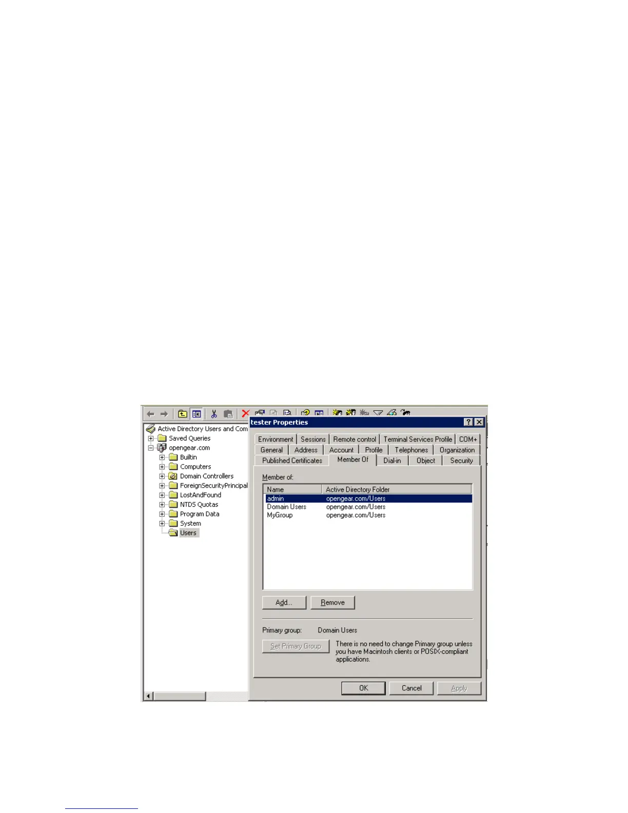 console and user interface. For example, the user must be a member of ‘MyGroup’ on the Active Server