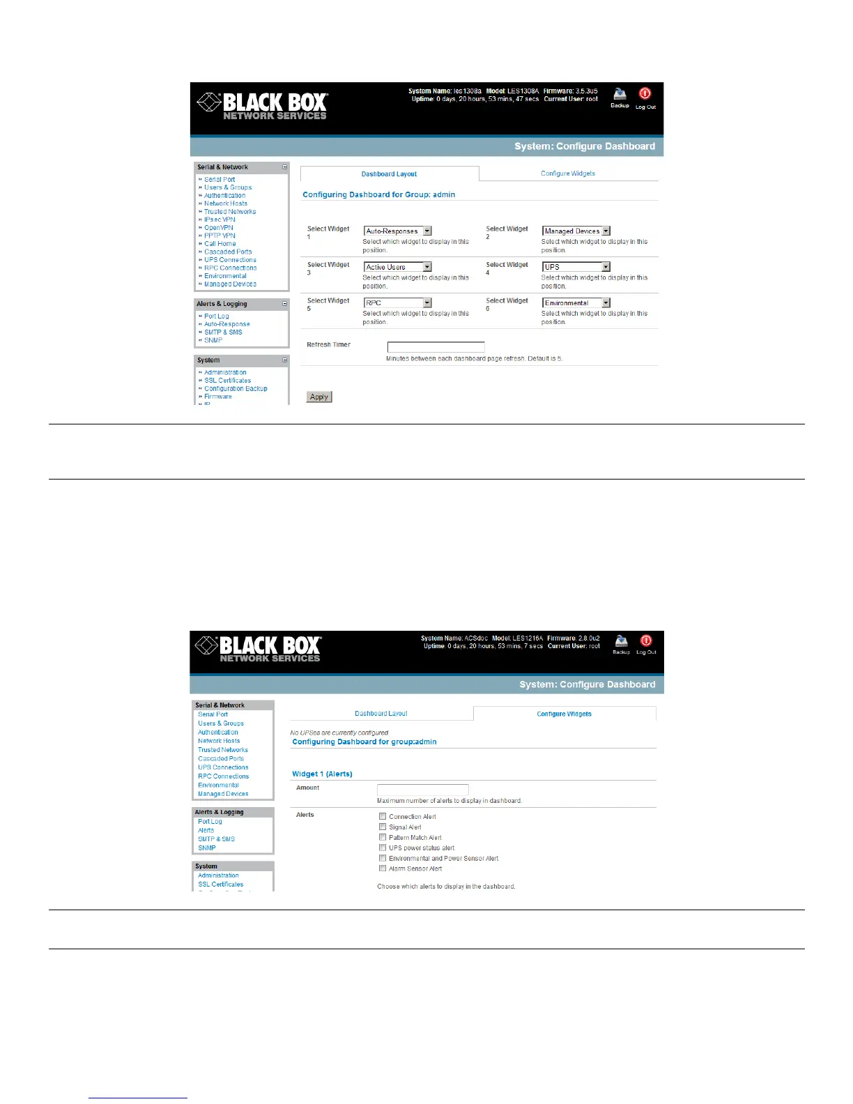 Note: Dashboard configuration is stored in the /etc/config/config.xml file. Each configured dashboard will increase the