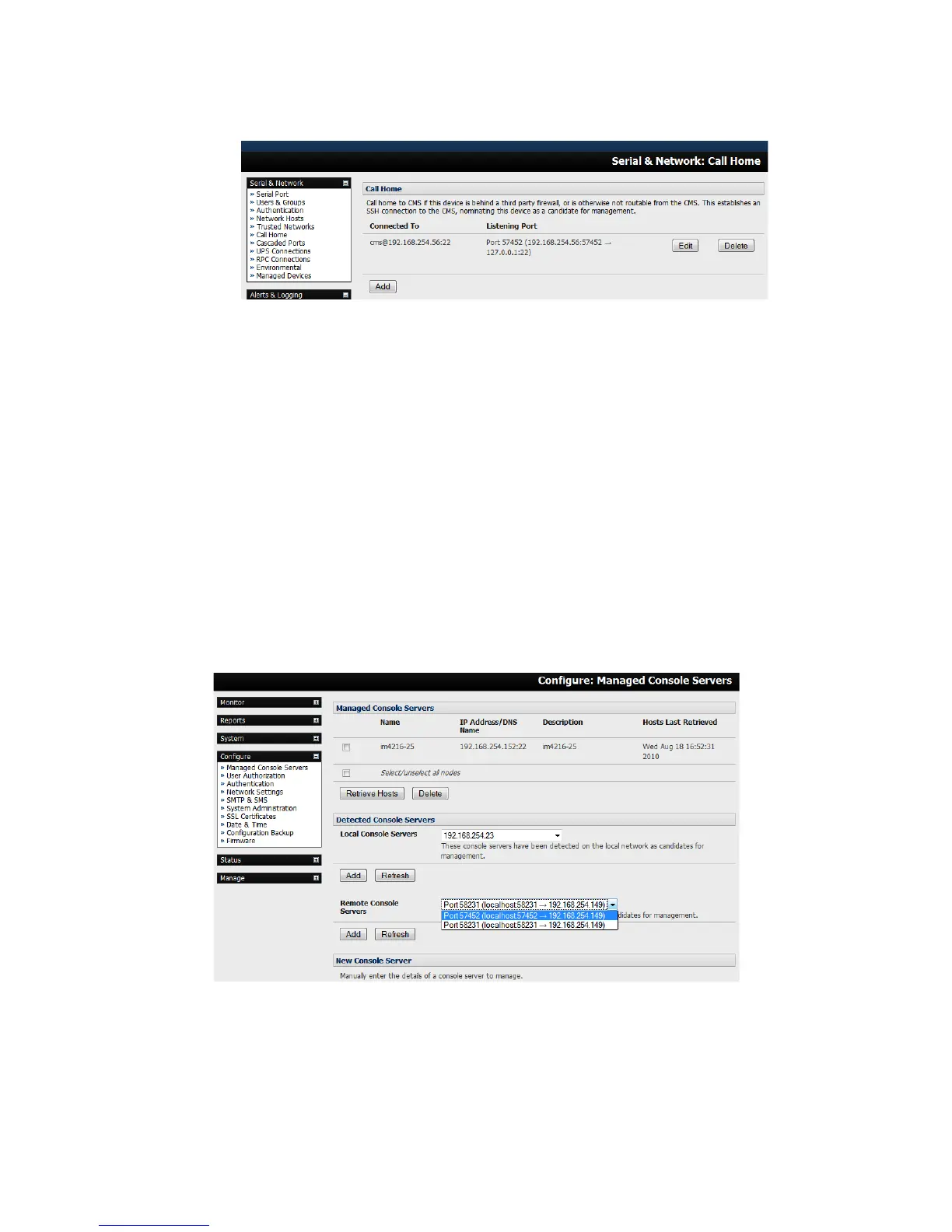 The Detected Console Servers section: