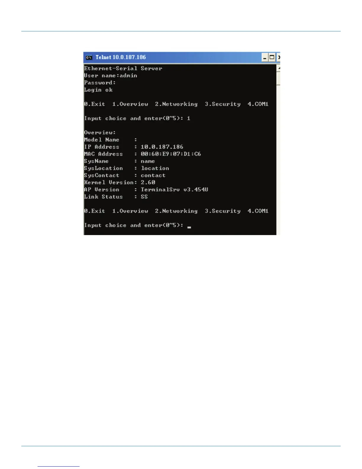This page gives you general information about the LES301A, including IP and MAC address, SNMP information, kernel and AP