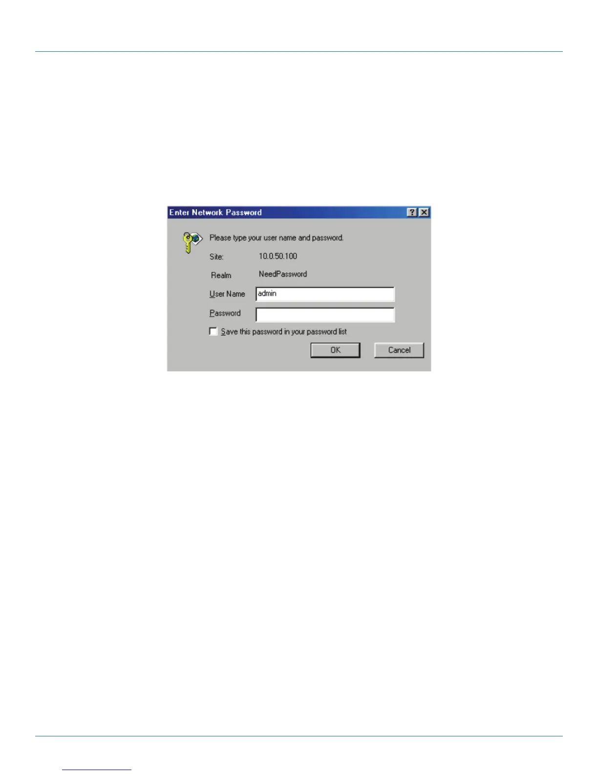 2. The following authentication screen appears. (See Figure 4-18.) Type in the user name and password, then click on “OK.” The