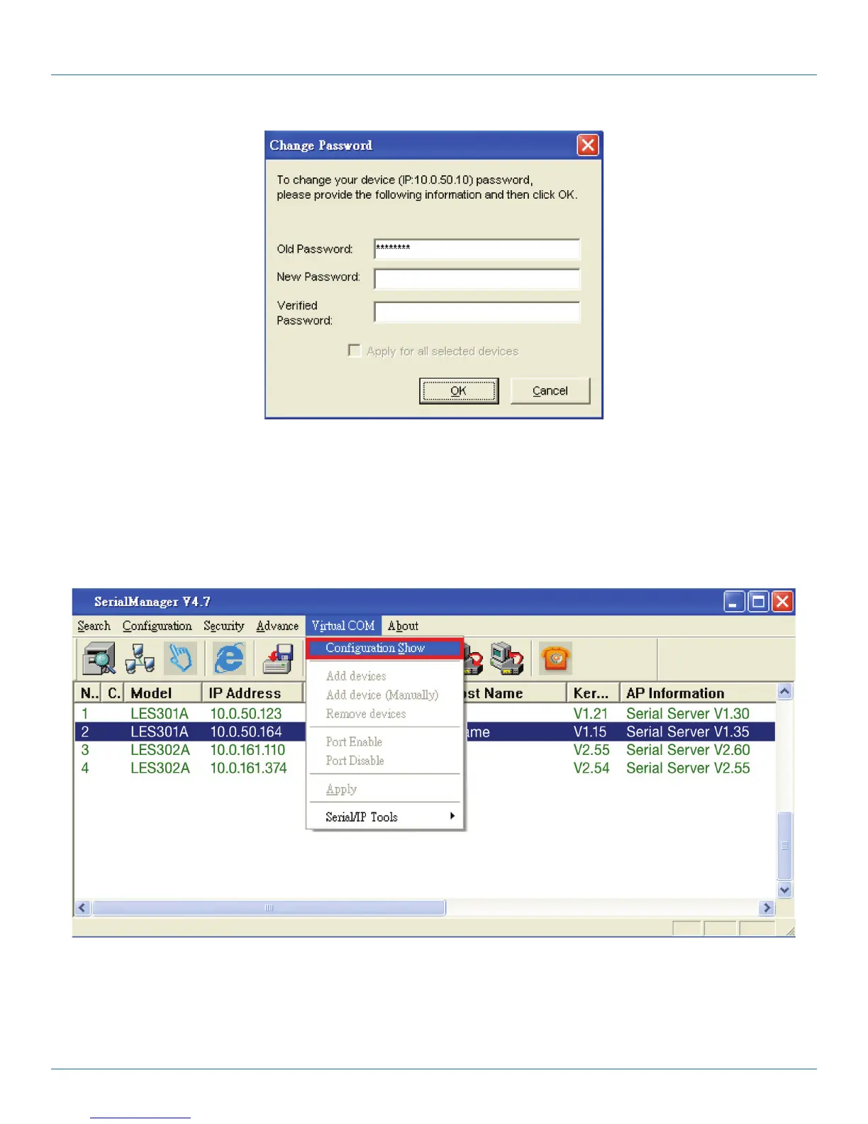 integrated into the Serial Manager. You can still select “Serial/IP Tools”to call original VirtualCOM configuration utilities. You can