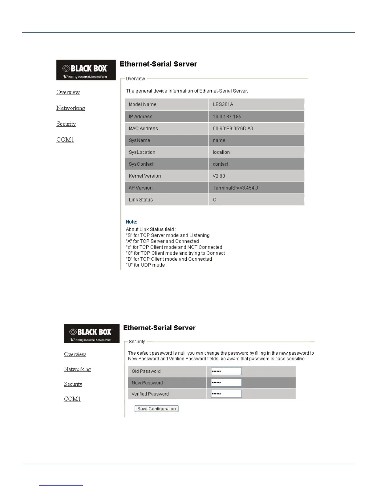 Black Box LES301A - Change the Password and RS-232;RS-485;RS-422 Type Selection