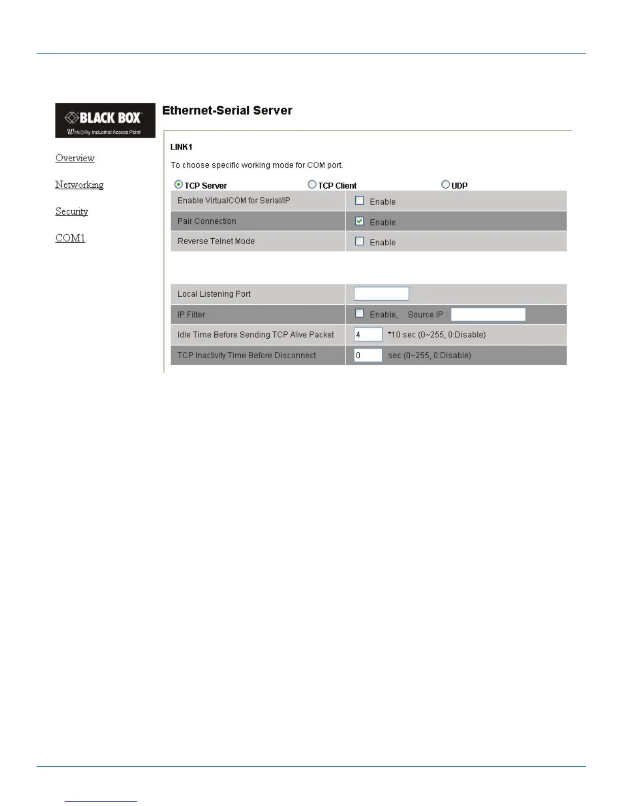 Configure the LES301A as UDP mode. The local port is 4660, the destination IP is 10.0.29.254, and the destination port is 4660.