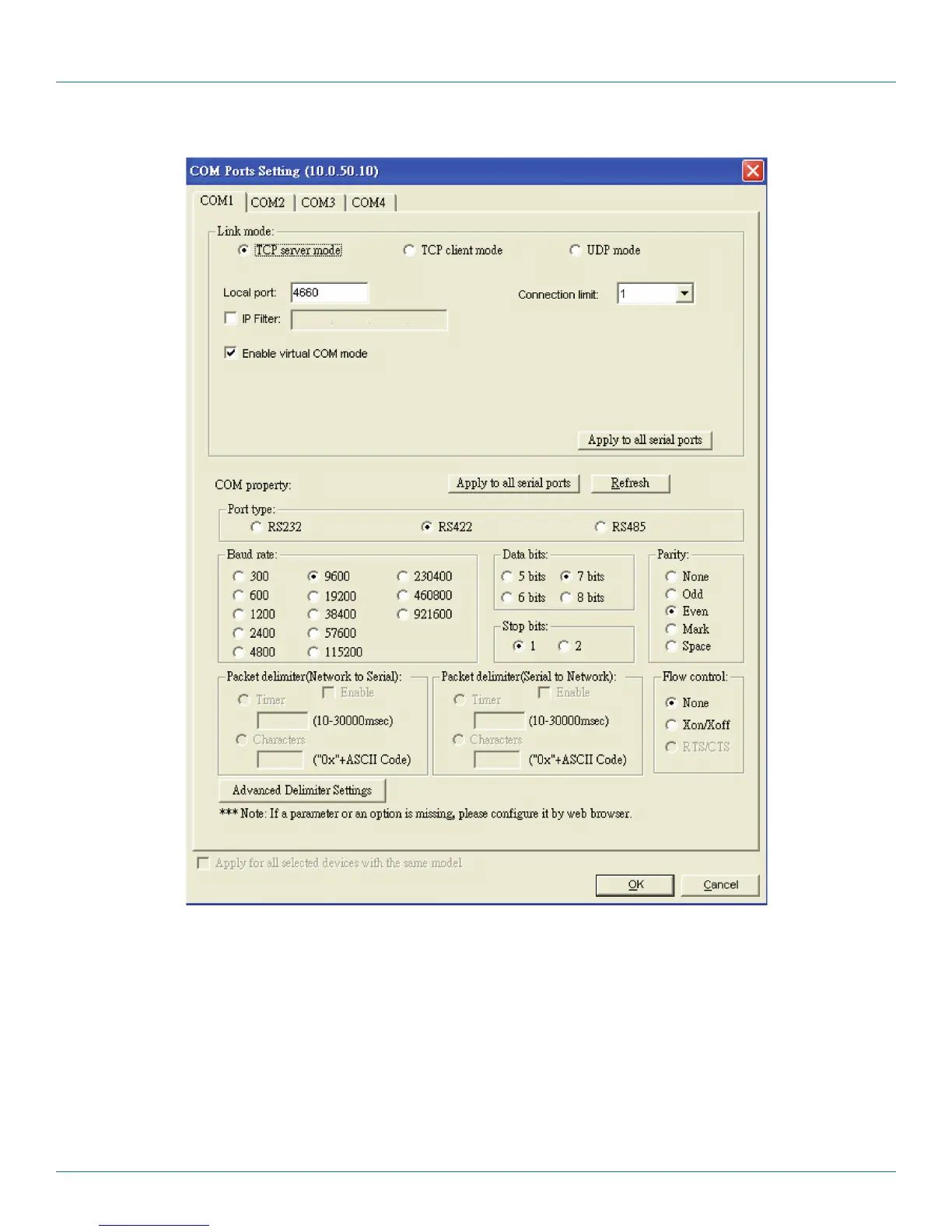 NOTE: COM tabs are generated automatically according to the COM port number of the device. If a device has four COM ports,