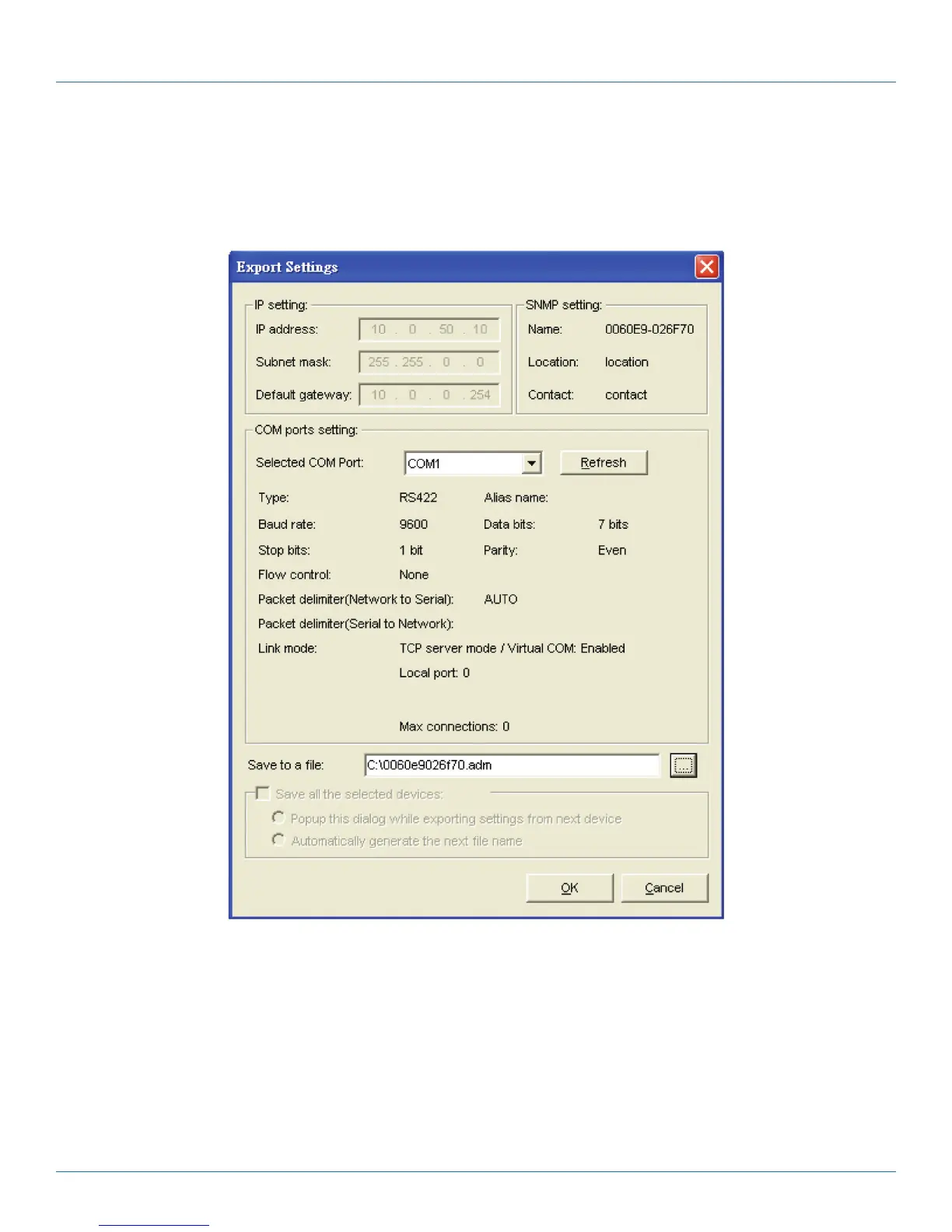 parameter file by selecting “Save all the selected devices.”