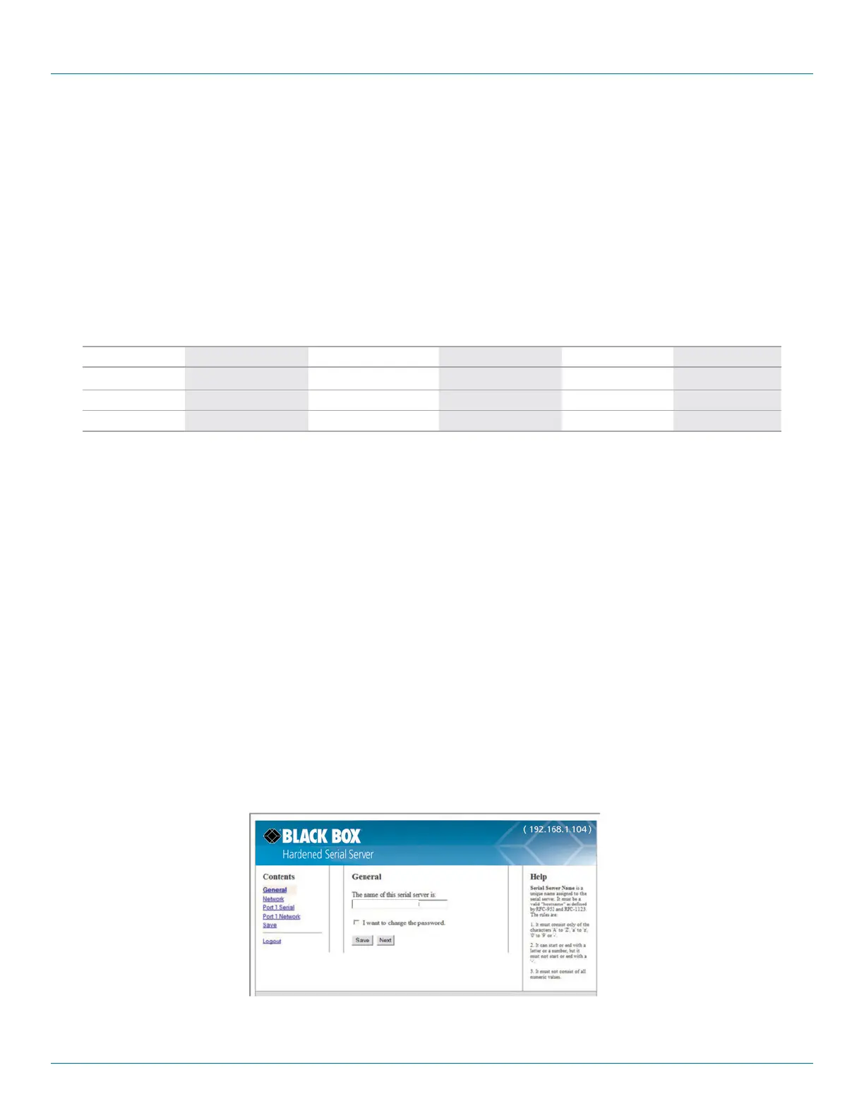 4.1.2 Hardened Serial Server Information Table