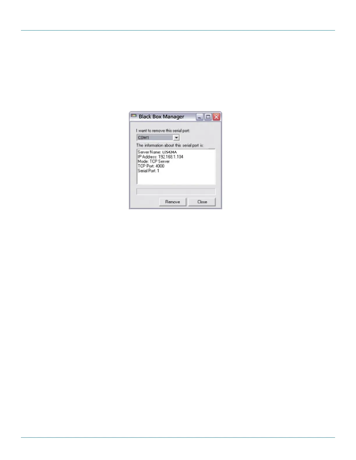 Clicking the “Remove” icon (located at the top of the Hardened Serial Server Software Configuration window) opens the “Remove