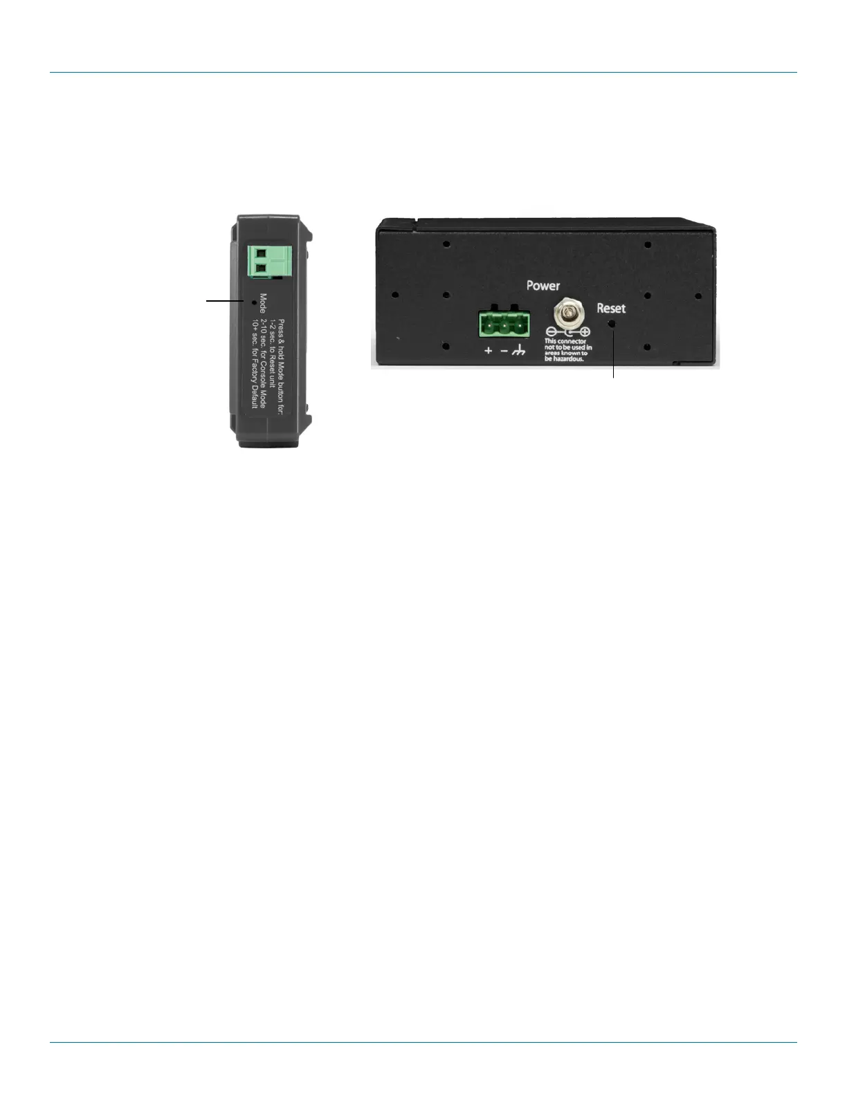 reset to factory default settings. The Hardened Serial Server will re-boot and enter Console Mode. LED P1 will be on while the unit is in