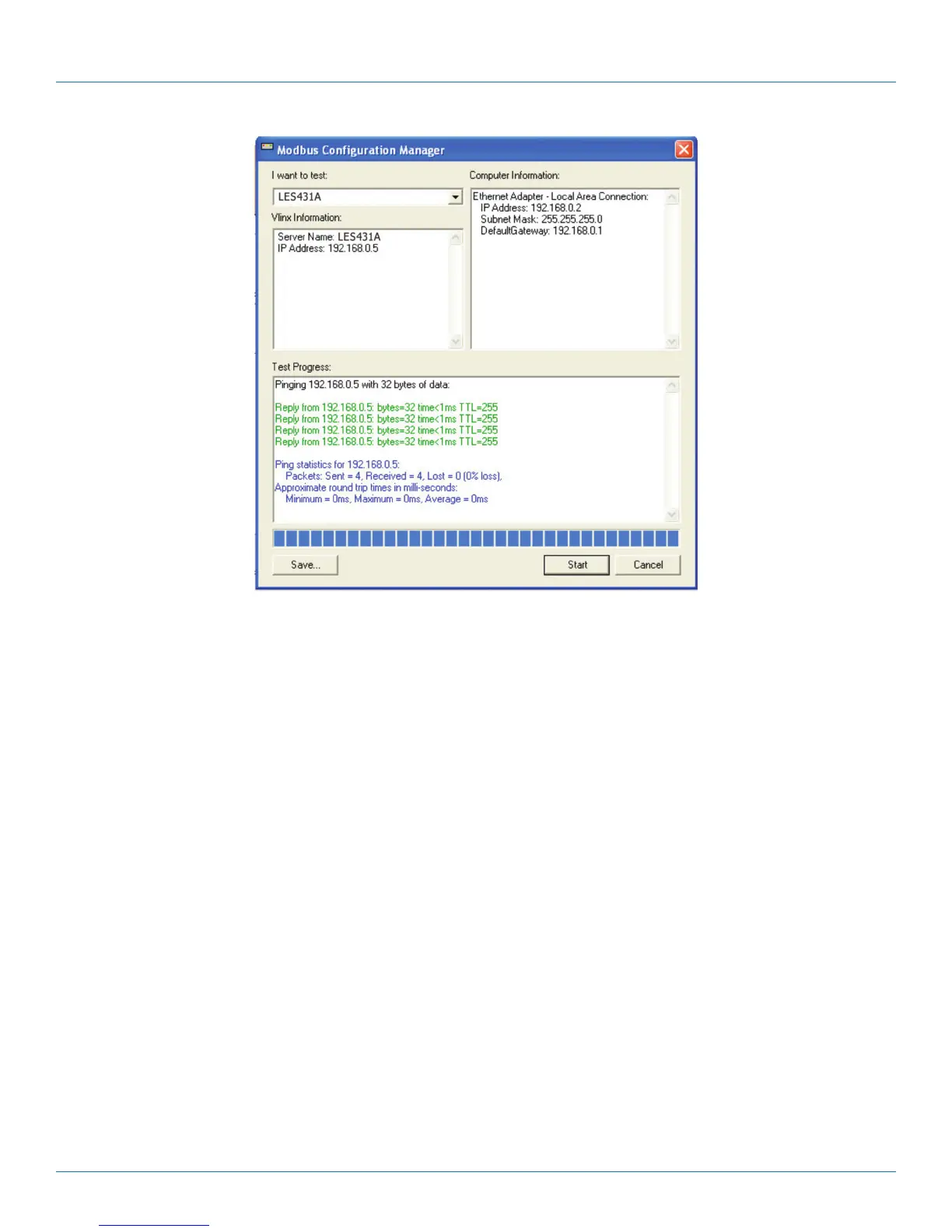Figure 5-2. Testing a Modbus Hardened Serial Server connection.