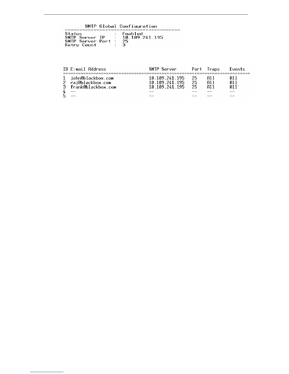LE2425A(smtp)##add id=2 email=raj@Blackbox.com traps=all events=all