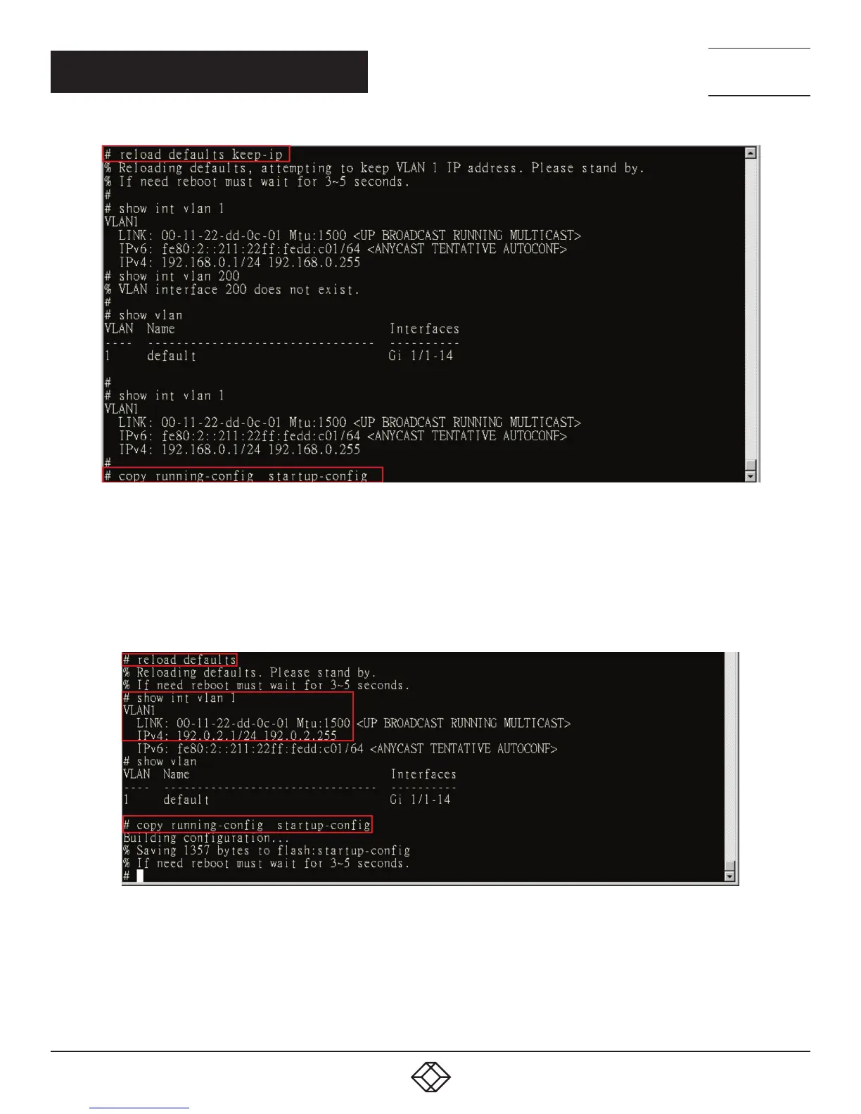 2. Check the interface VLAN and IP address, confirm that they all changed to the default setting.