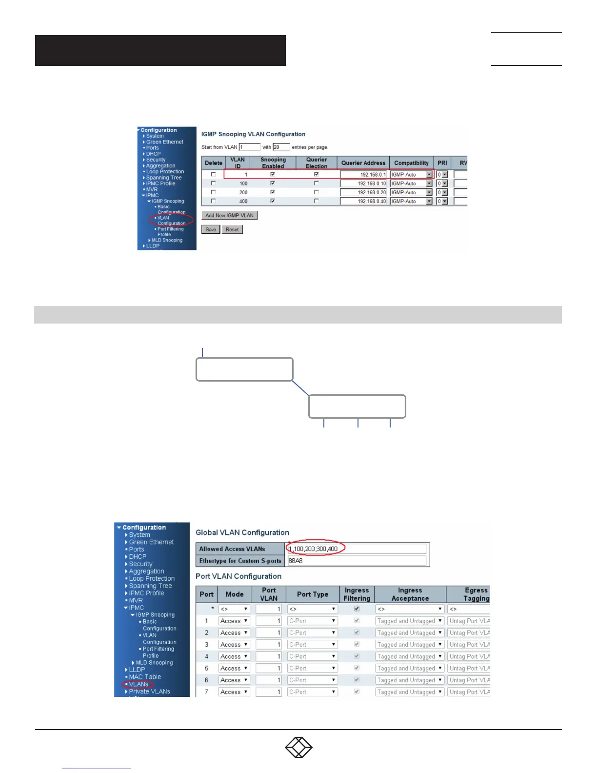 1. To create a VLAN: go to ”Configuration —> VLANs —> Allow Access VLANs”, then set port 14 to be a vlan200 member port.