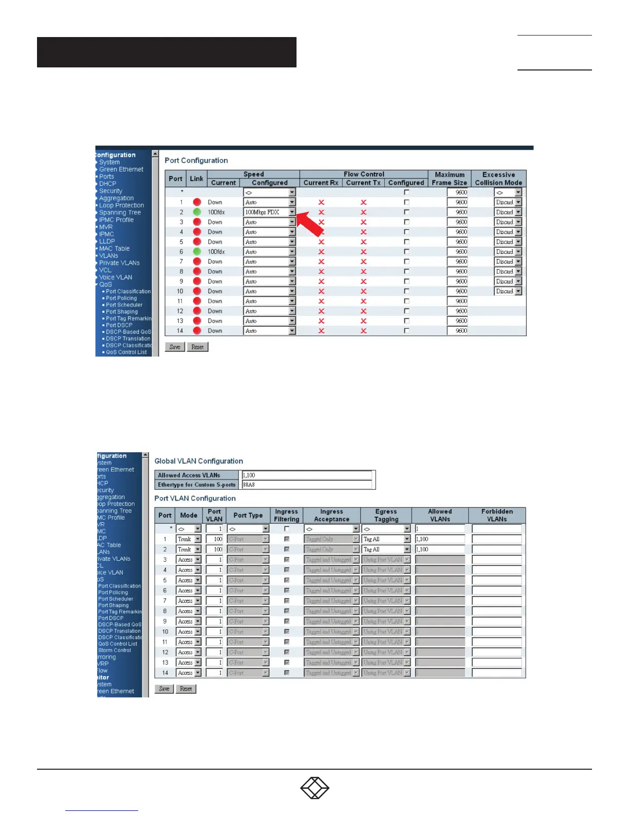 STEP 1: Go to Configuration —> Ports —> set port 2 link speed to 100 Mbps full duplex.