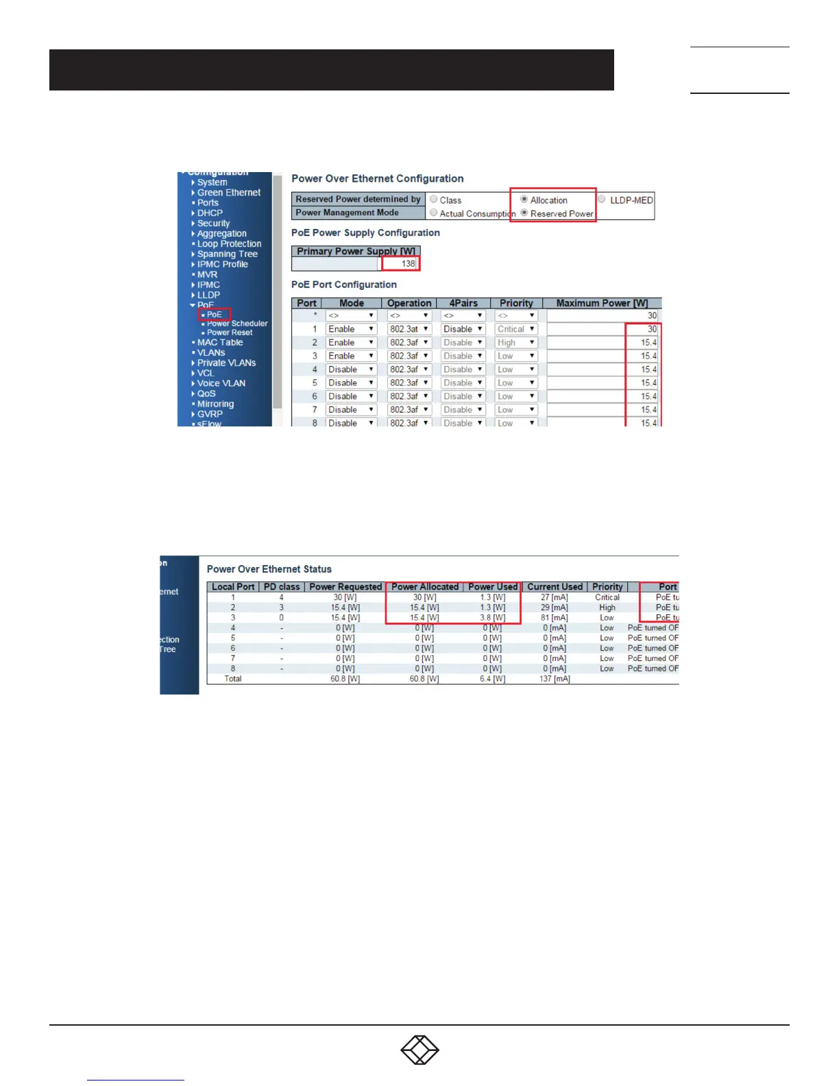 Since power is reserved for each port in advance, each powered device can use the power budget of its corresponding port without