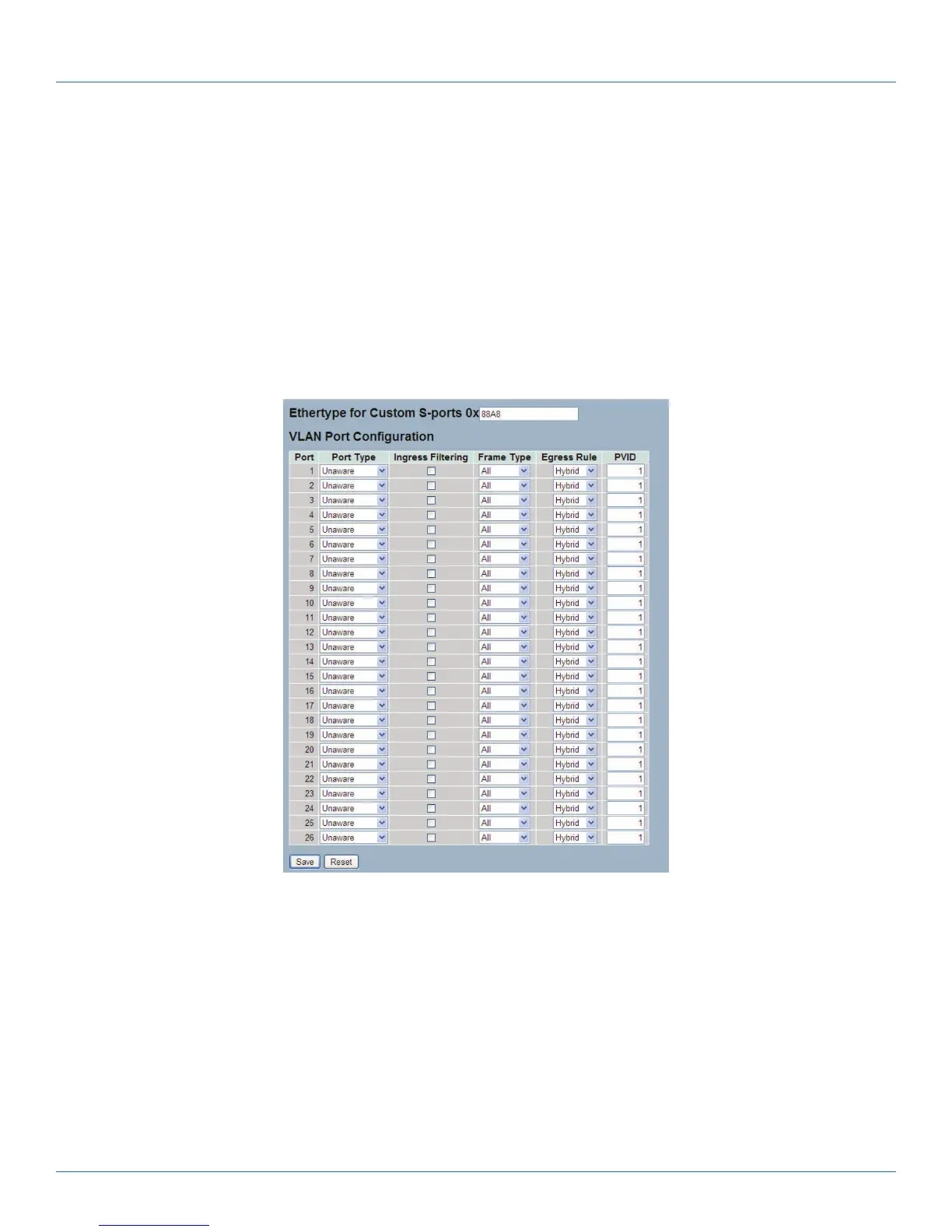 rule. The function of Port Type, Ingress Filtering, Frame Type, and PVID affect Ingress process. Furthermore, Port Type, Egress Rule,