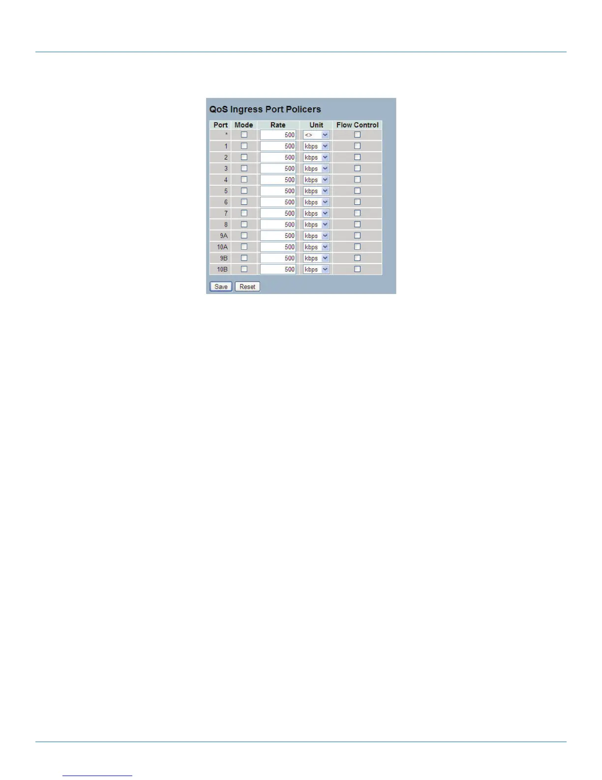 Figure 3-73. The QoS Ingress Port Policers Configuration screen.