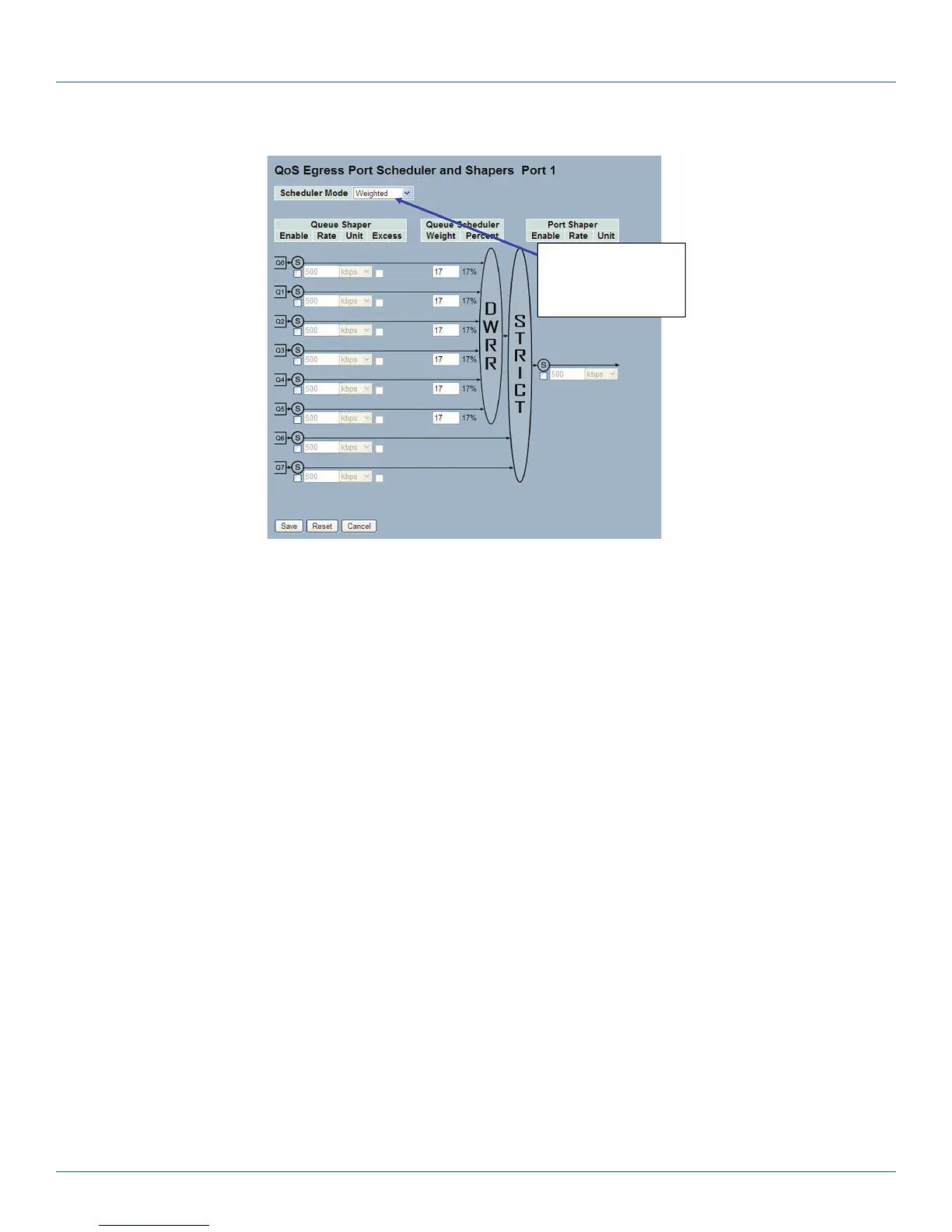 • Scheduler Mode: Controls whether the scheduler mode is “Strict Priority“ or “Weighted“ on this switch port.