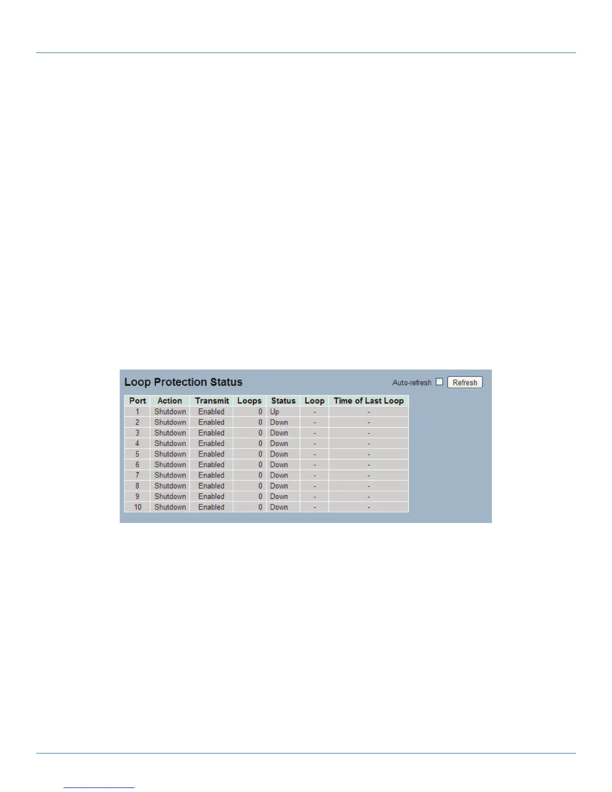 • Icon, upper right of screen (Refresh): Click to refresh the Loop Protection status information manually.
