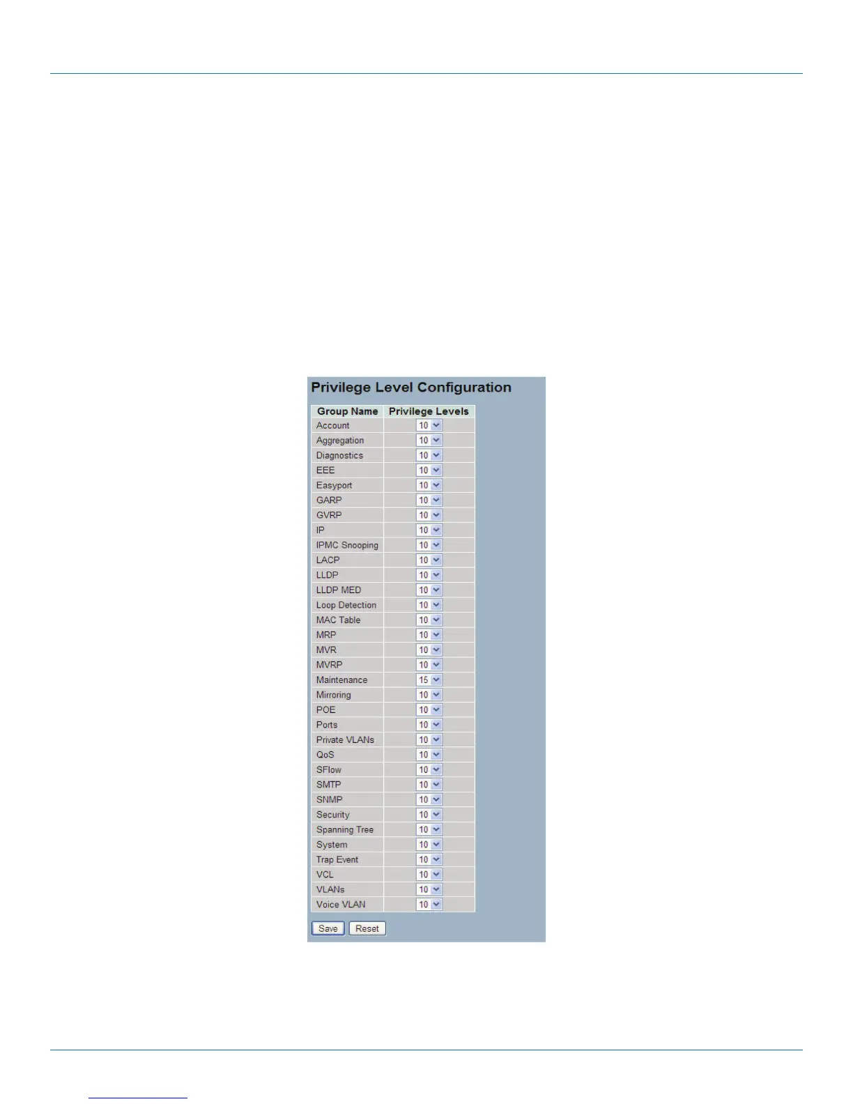 This section provides an overview of Privilege Levels. The switch enables administrators to set user privileges in a number of