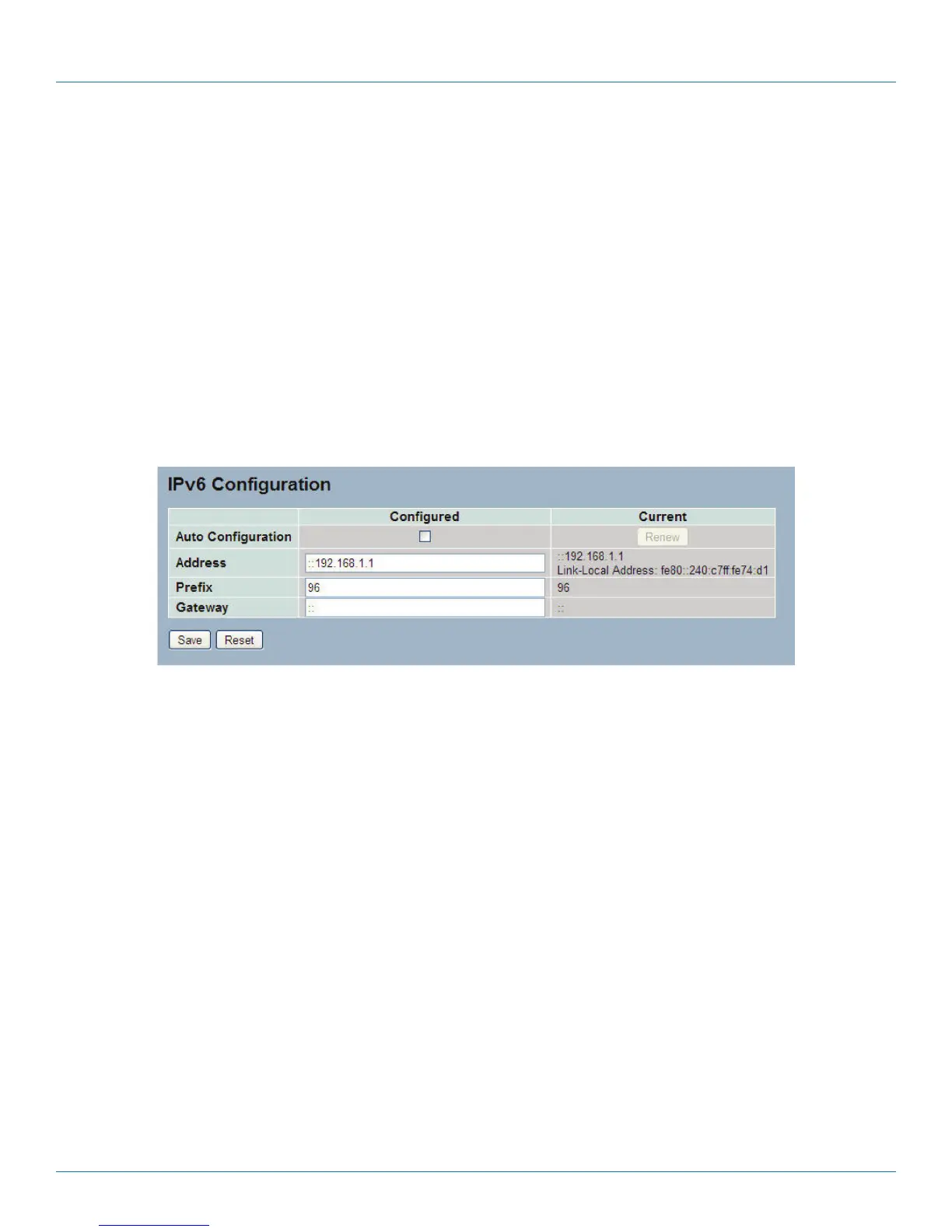the IPv6 configuration. And the Current column is used to show the active IPv6 configuration.
