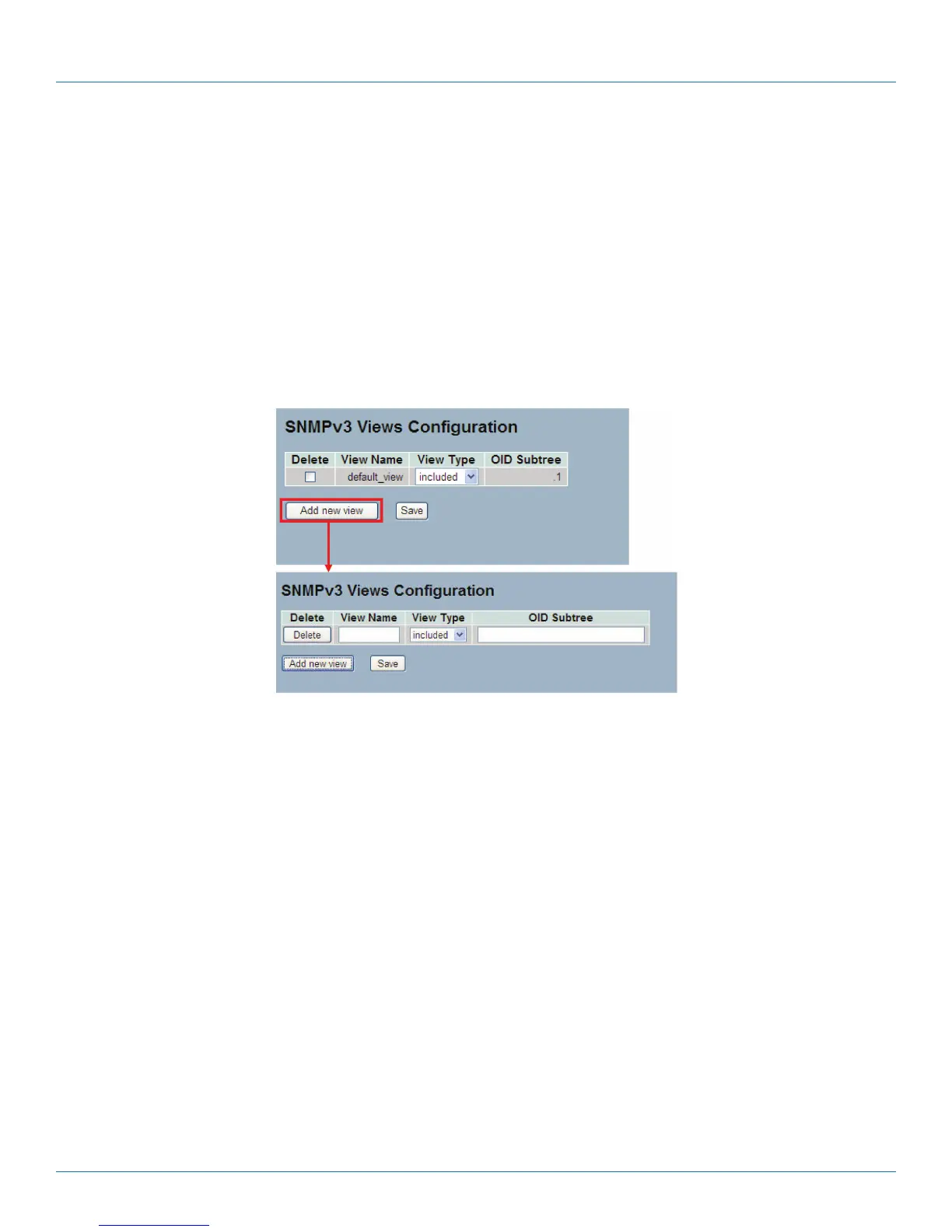 This function is used to configure SNMPv3 view. The entry index keys are OID Subtree and View Name. To create a new view