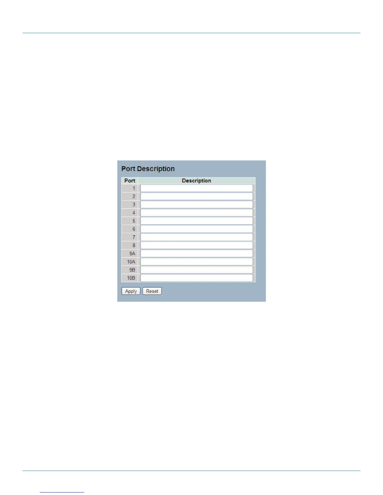 1. Click Configuration, Port, then Port Description.