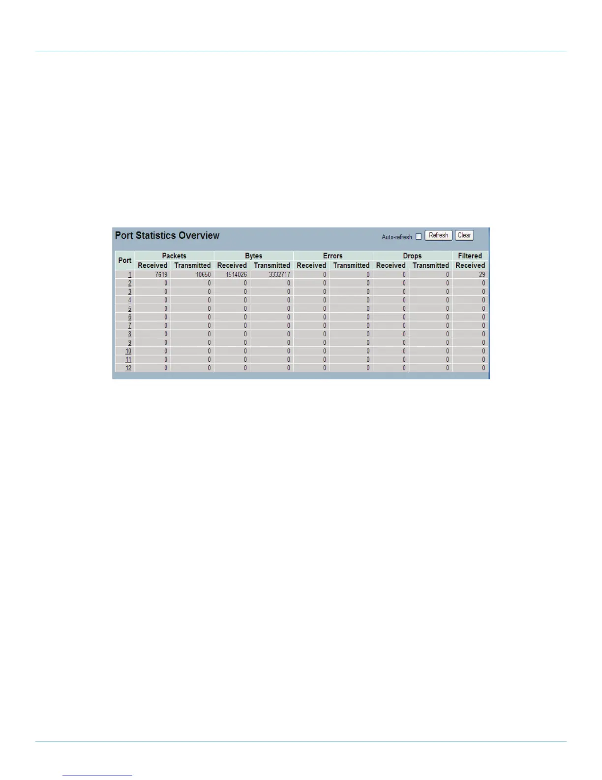 3. Click “Refresh“ to refresh the port statistics or clear all information by clicking “Clear”.