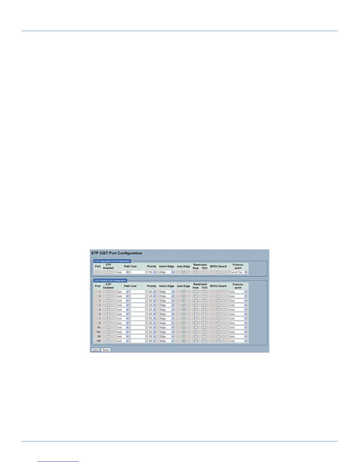 This section describes how it enables the user to inspect the current STP CIST port configurations and change them if needed.