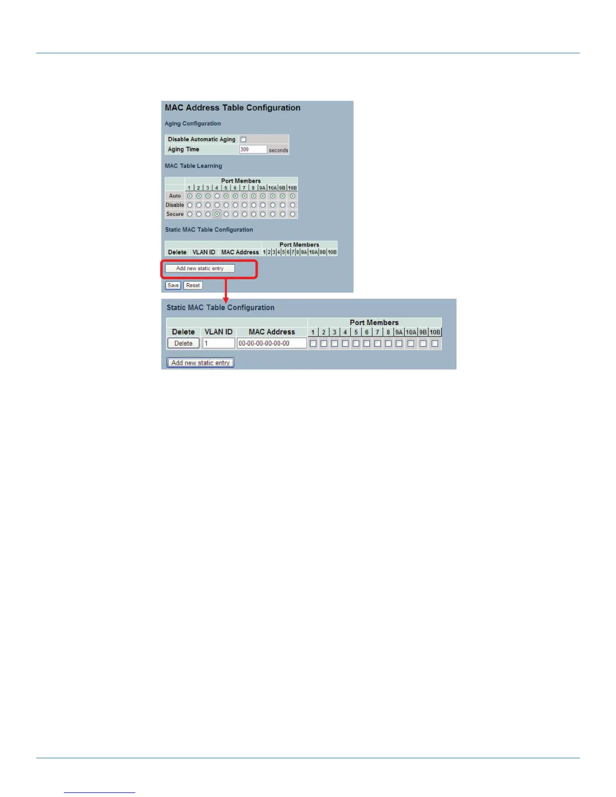 NOTE: Make sure that the link used for managing the switch is added to the Static MAC Table before changing to secure learning