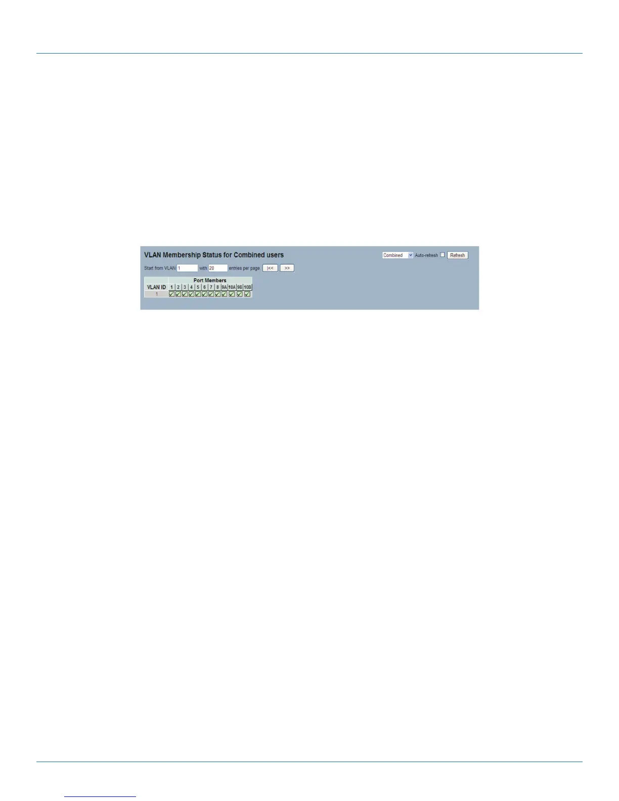• VLAN Membership: The VLAN Membership Status Page shall show the current VLAN port members for all VLANs configured